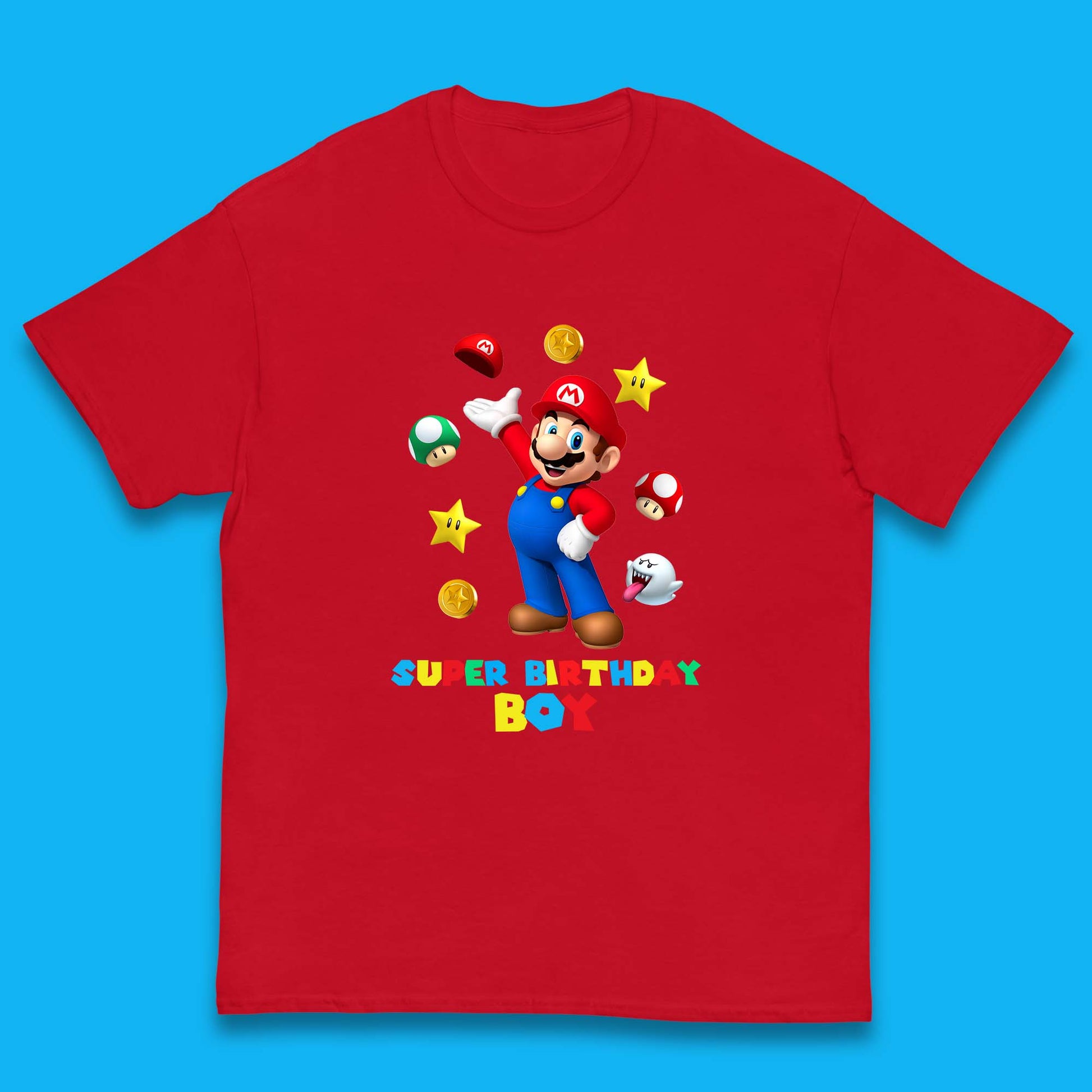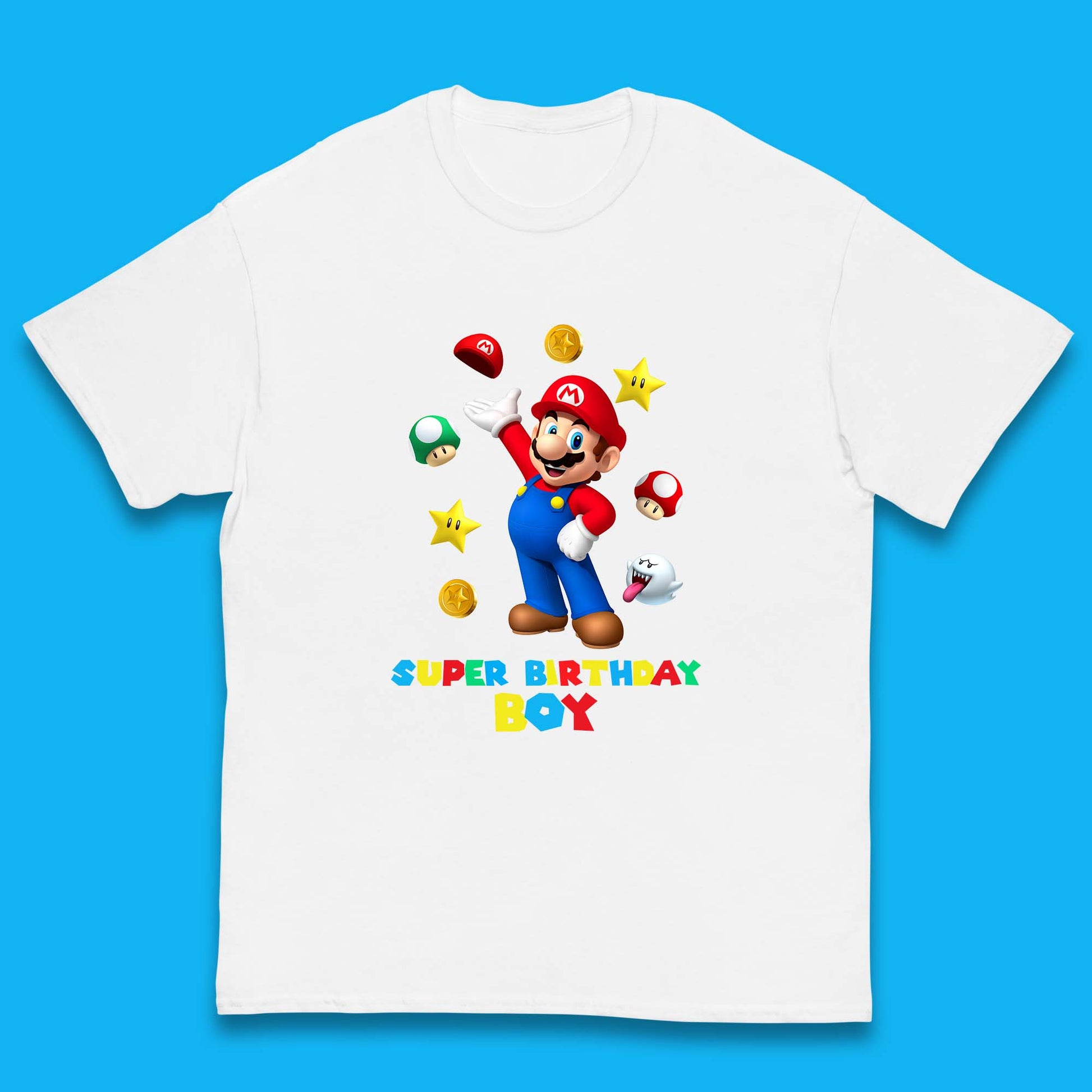 Super Birthday Boy Super Mario Game Series Mario Bros Super Mario Theme Birthday Party Kids T Shirt