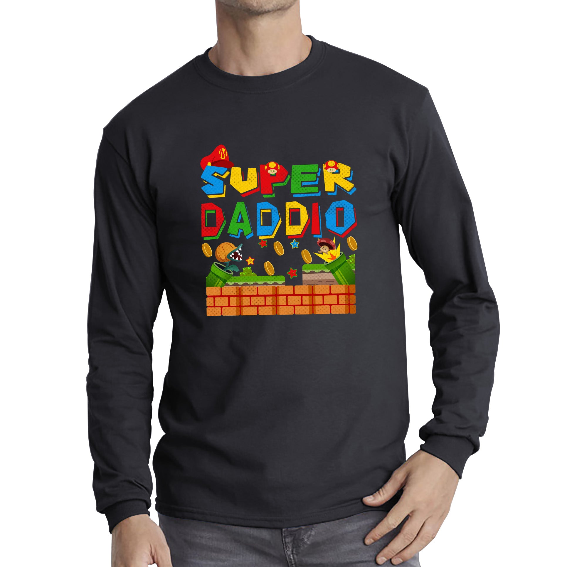 Super Daddio Daddy Gamer Dad Super Dad Super Mario Spoof Father's Day Game Series Mario Bros Long Sleeve T Shirt