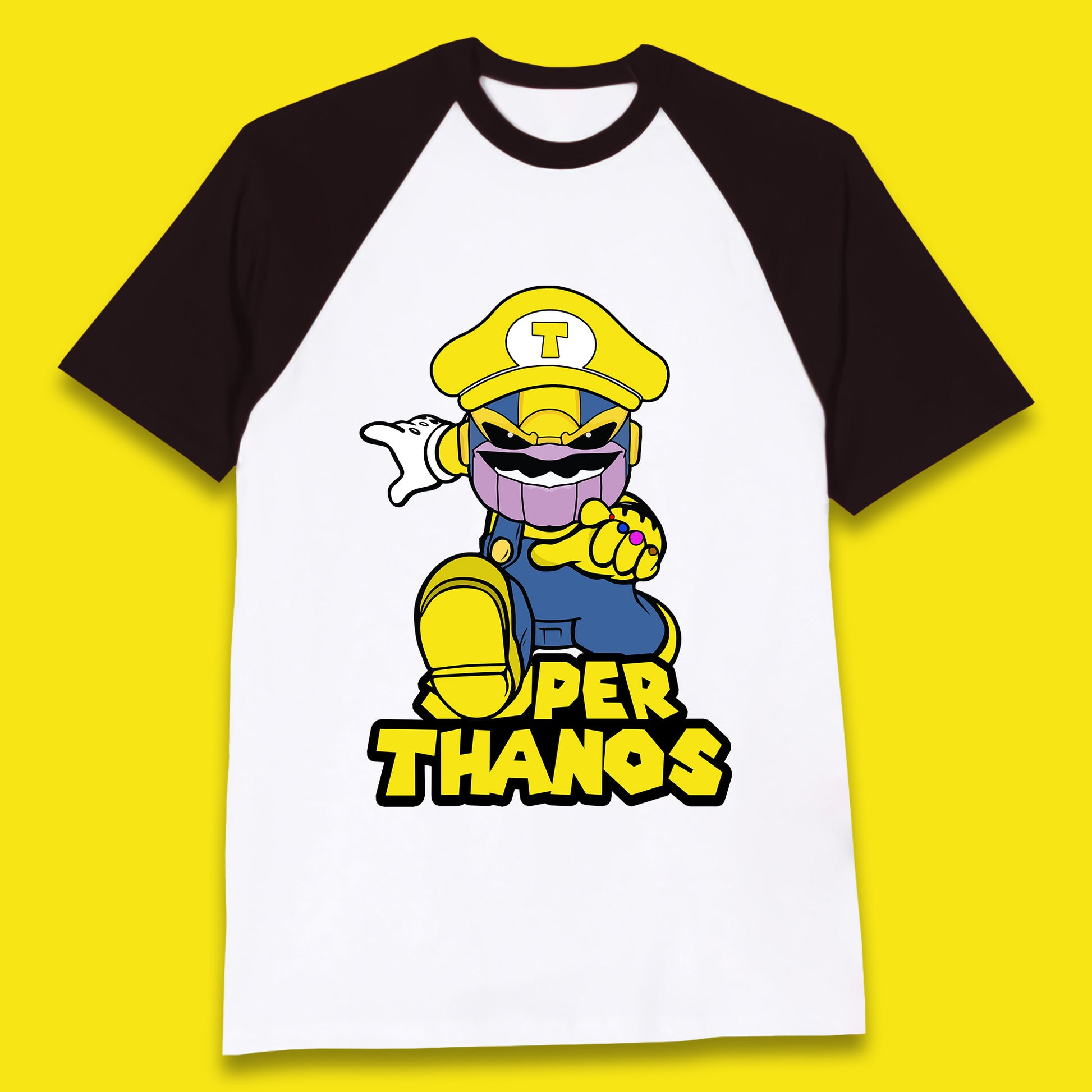 Super Thanos Marvel Infinity Gauntlet Super Mario Spoof Marvel Nintendo Game Series Wario Thanos Fictional Character Baseball T Shirt