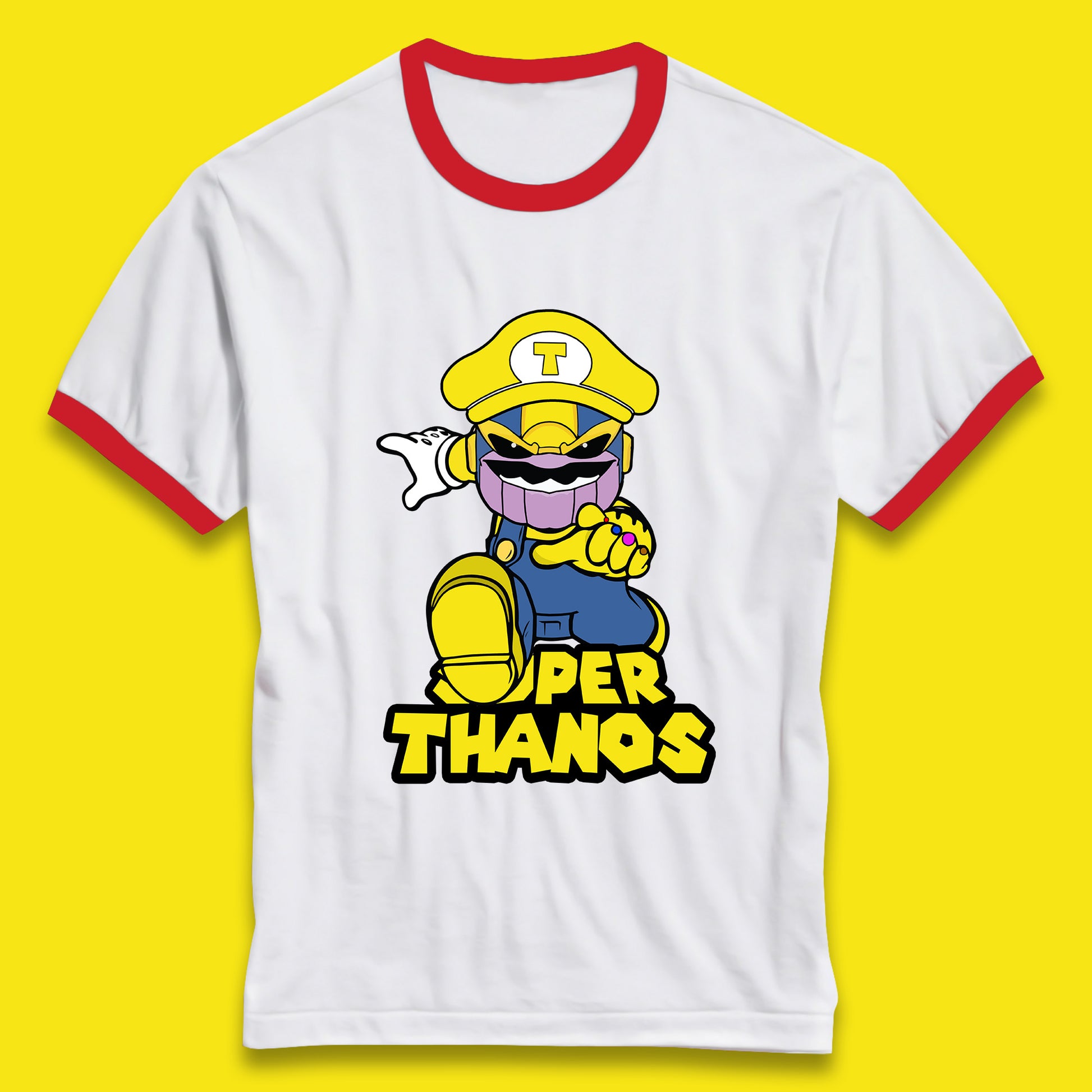 Super Thanos Marvel Infinity Gauntlet Super Mario Spoof Marvel Nintendo Game Series Wario Thanos Fictional Character Ringer T Shirt