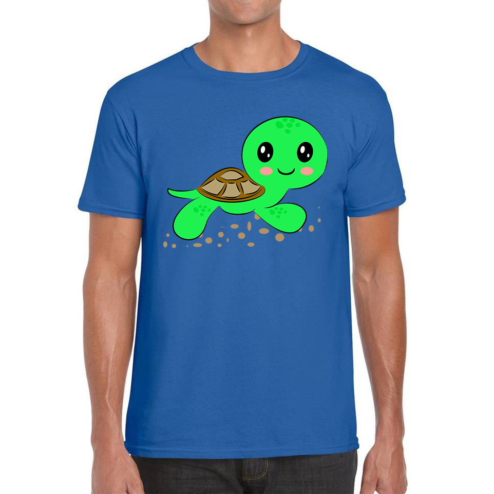 Swimming Cartoon Turtle, Funny Cute Little Sea Turtle Mens Tee Top