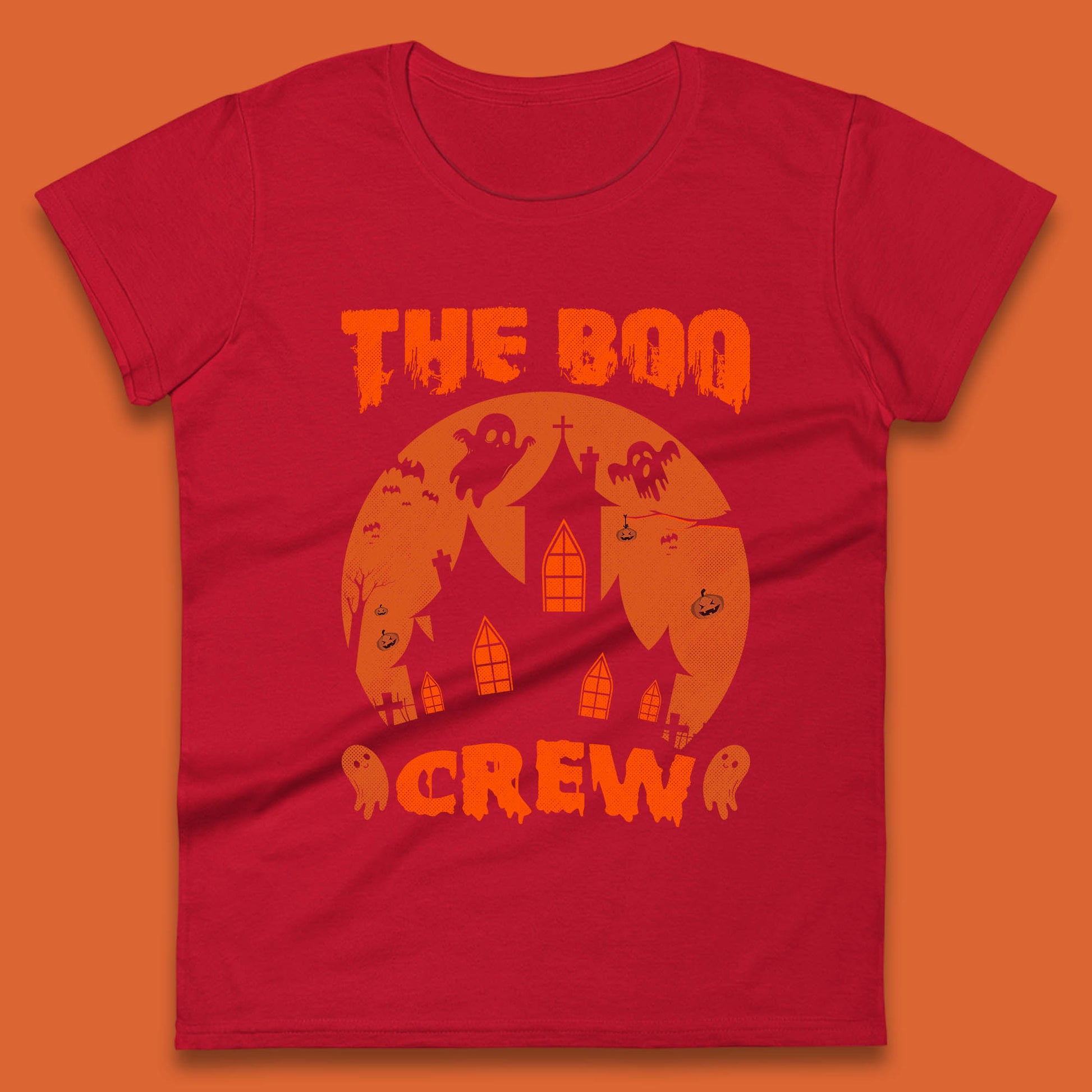The Boo Crew Halloween Boo Squad Matching Costume Haunted House Horror Boo Ghost Womens Tee Top