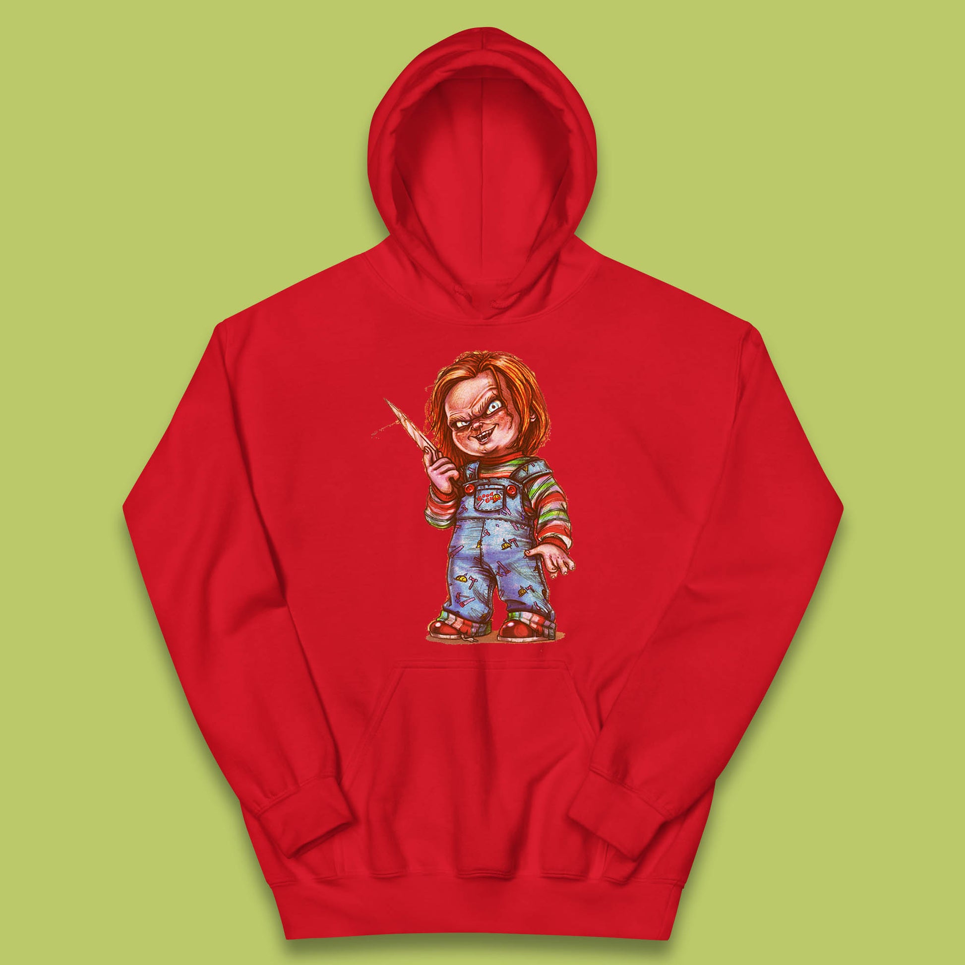 The Horror Movie Character Chucky With Knife Serial Killer Halloween Horror Movie Inspired Chucky Kids Hoodie