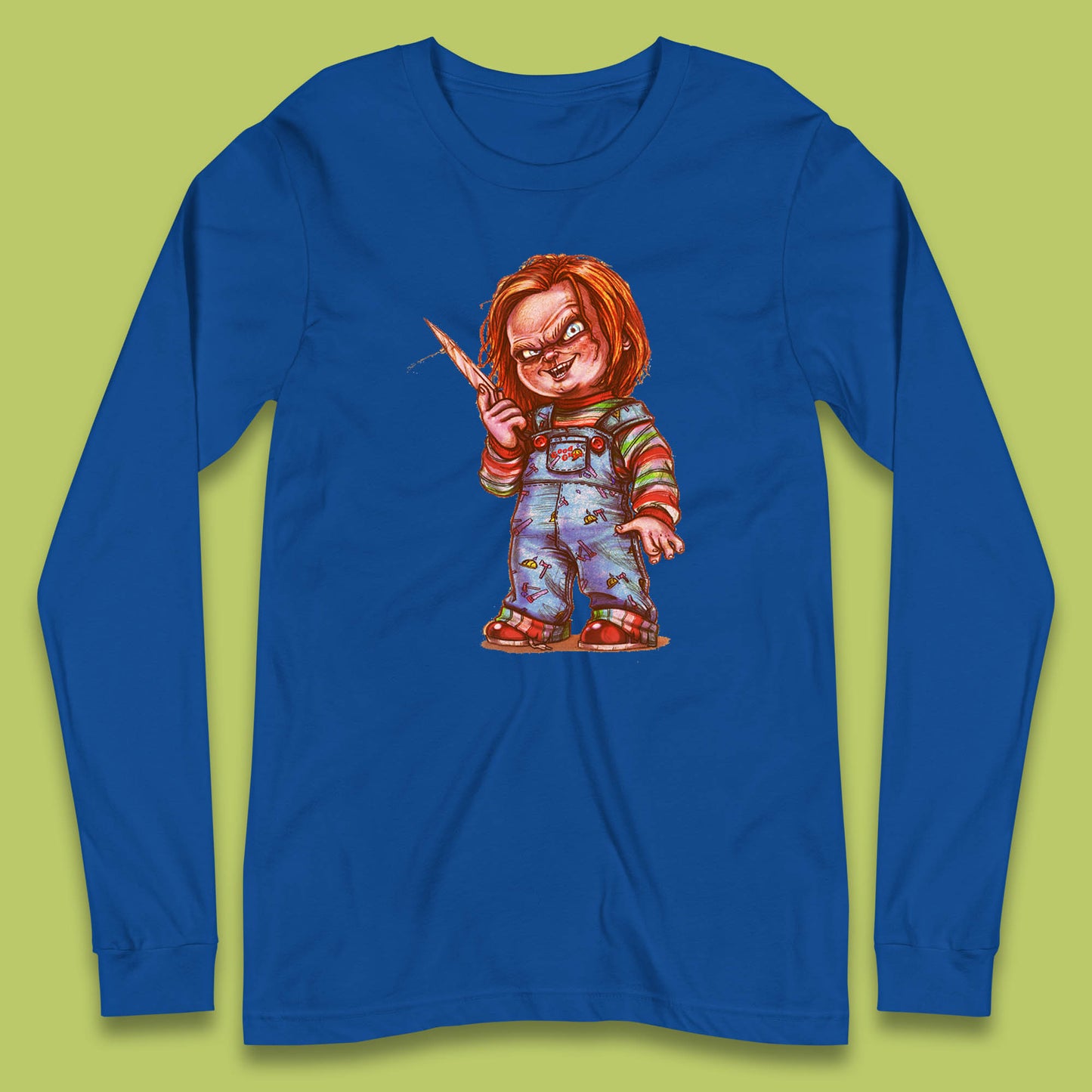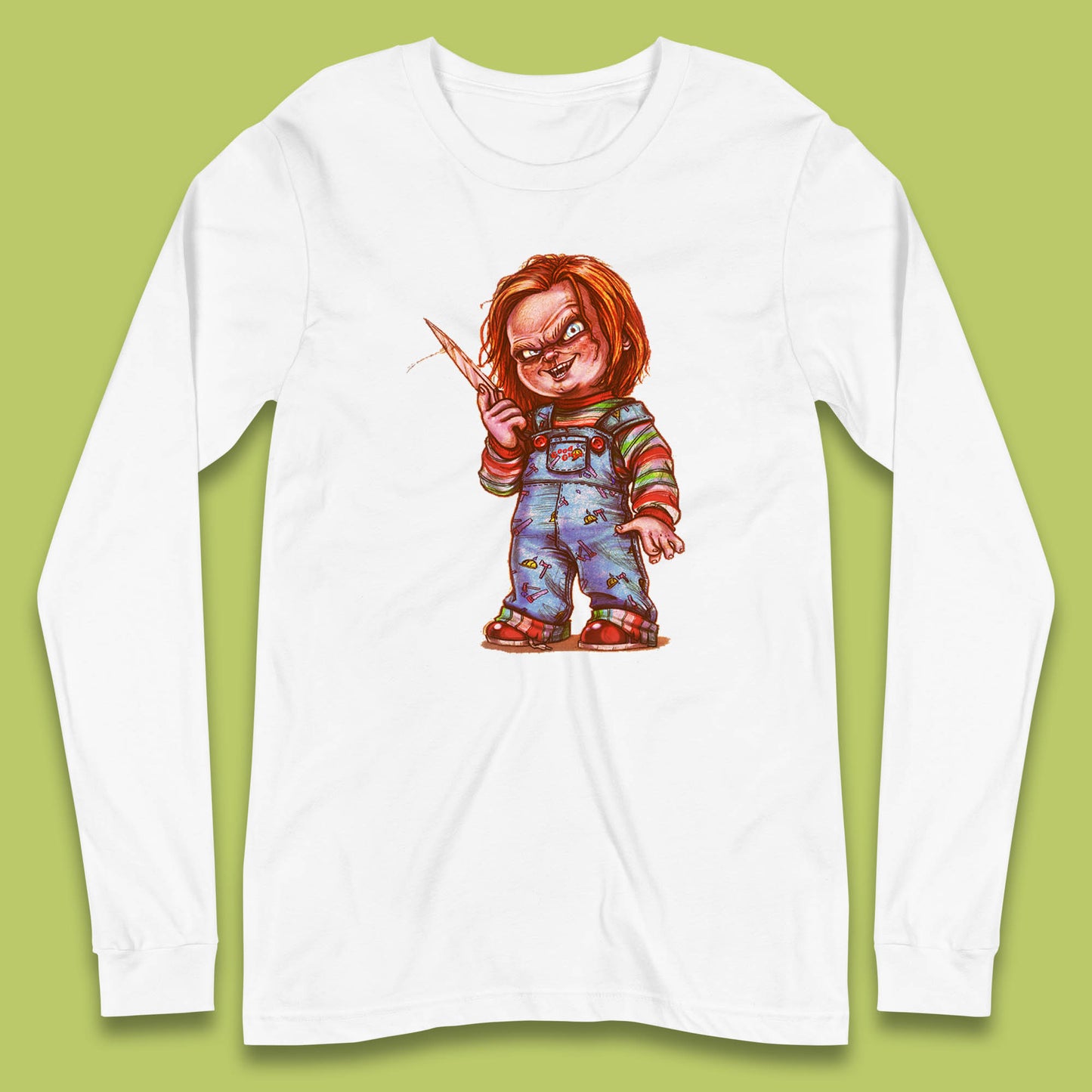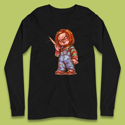 The Horror Movie Character Chucky With Knife Serial Killer Halloween Horror Movie Inspired Chucky Long Sleeve T Shirt