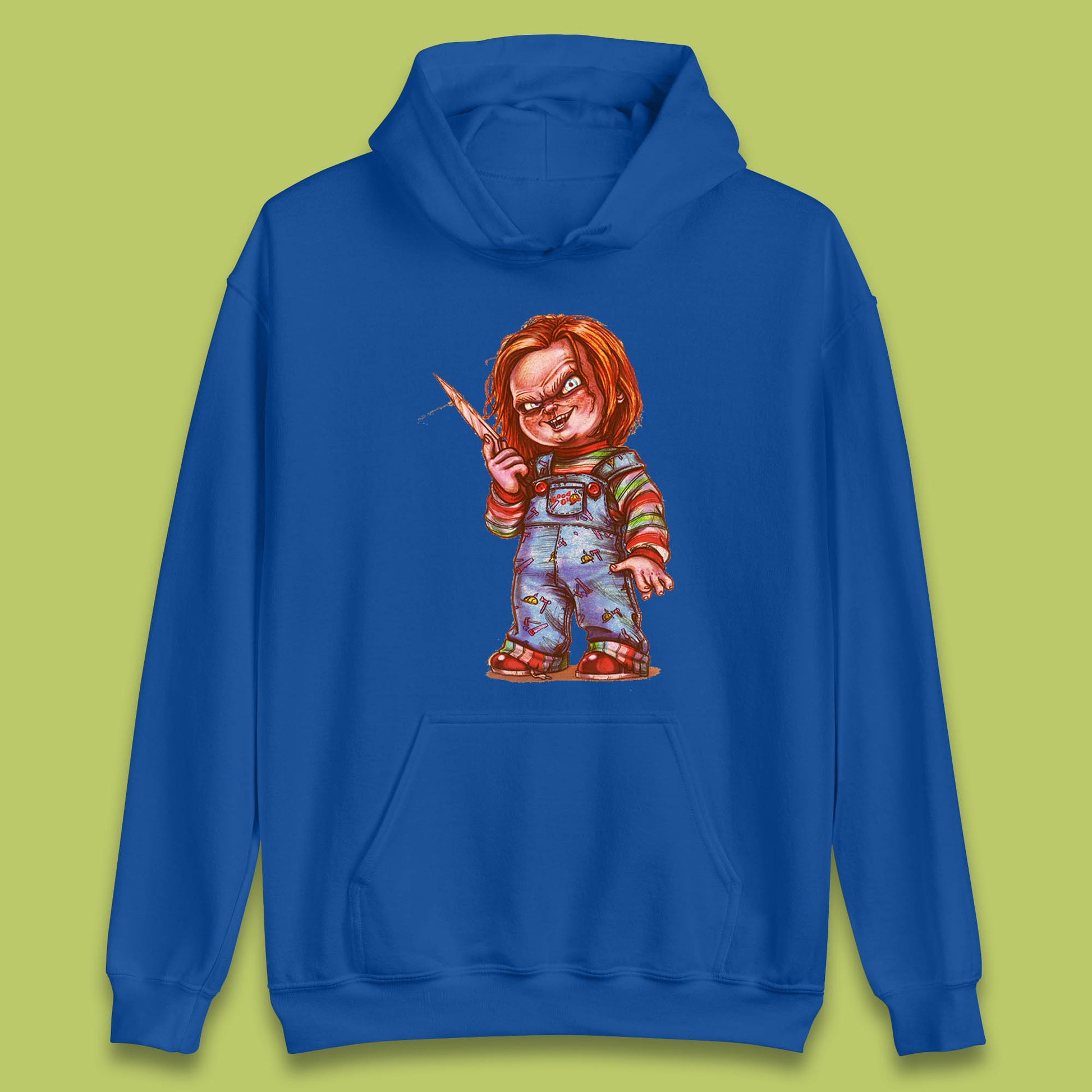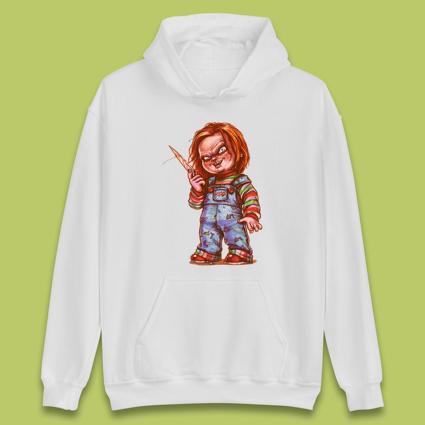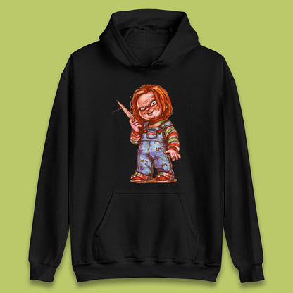 The Horror Movie Character Chucky With Knife Serial Killer Halloween Horror Movie Inspired Chucky Unisex Hoodies