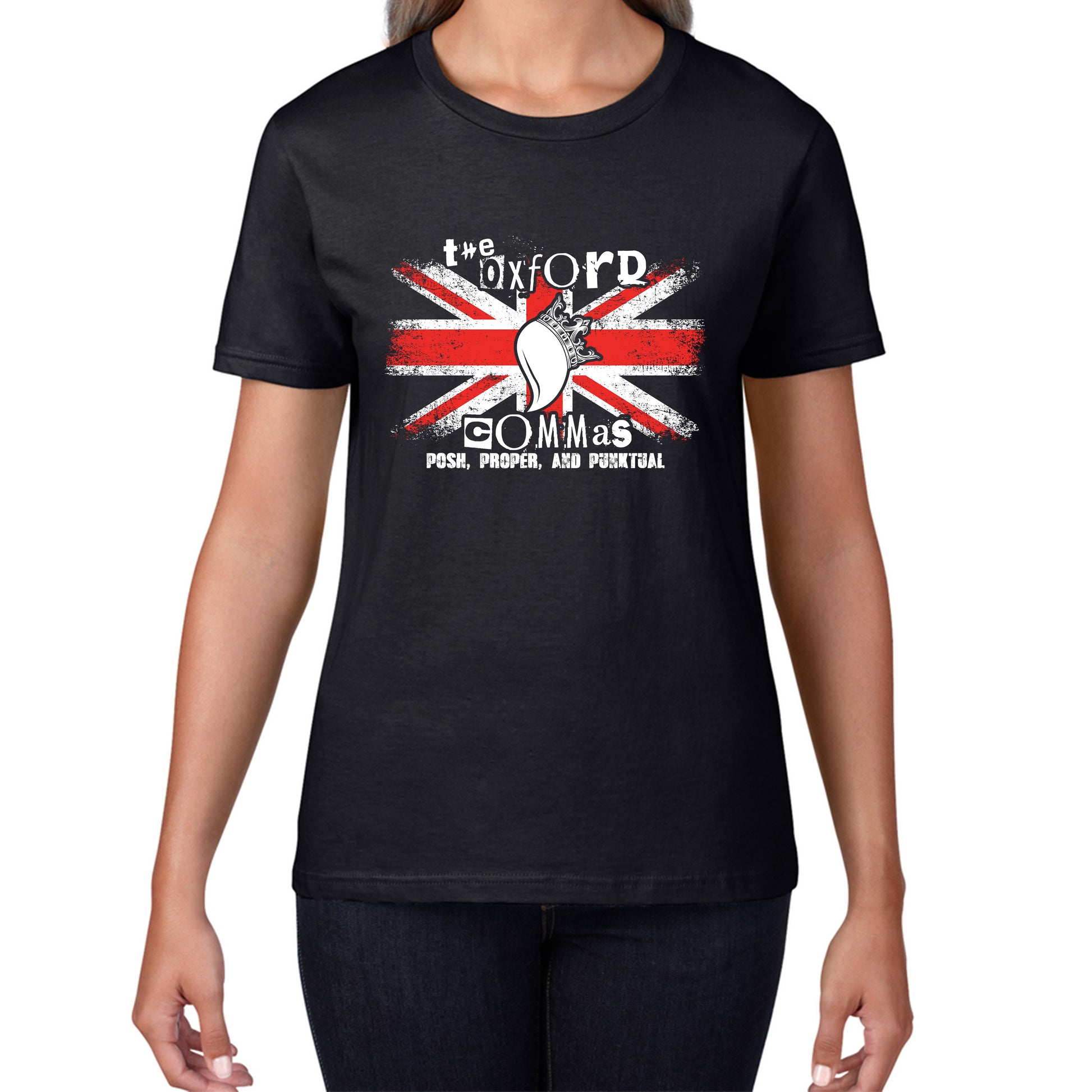 The Oxford Commas Push, Proper and Punktual Funny Grammar UK Flag Womens Tee Top