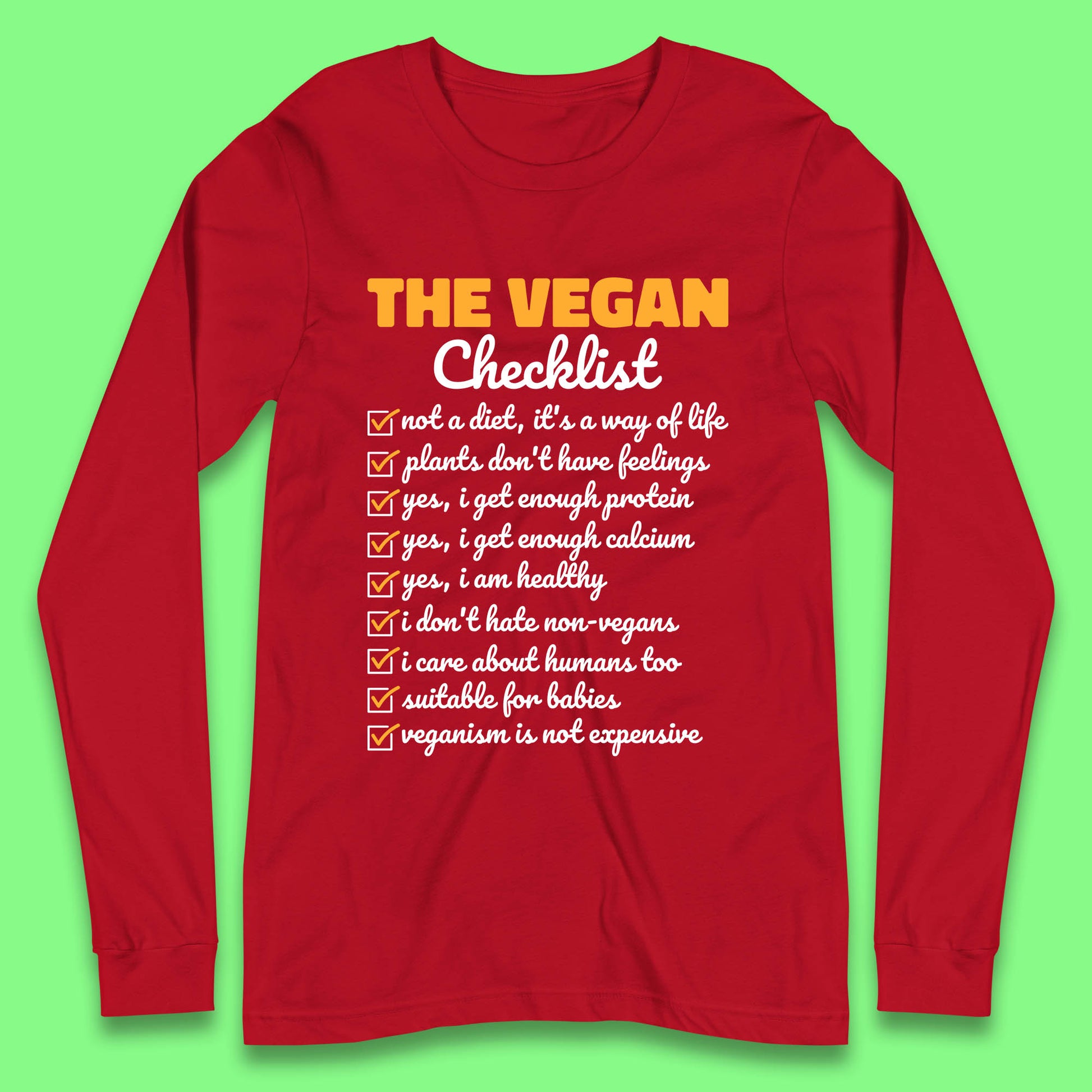 The Vegan Checklist Vegan Activism Funny Pro Vegetarian Checklist Long Sleeve T Shirt