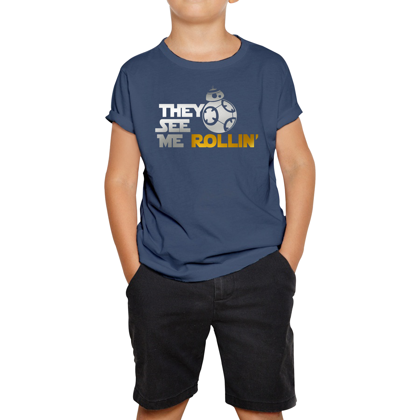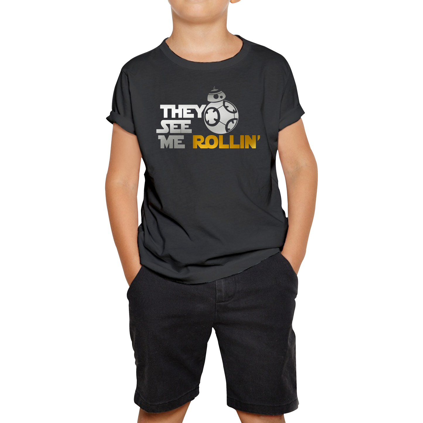 Let your little one roll through the day in style with the "They See Me Rollin" kids' T-shirt. Crafted from a soft and breathable cotton blend, this T-shirt offers all-day comfort, perfect for active kids. The fun and playful "They See Me Rollin" graphic on the front adds a touch of humor, making it a favorite for school, playdates, or casual outings. Designed with a classic crewneck and short sleeves, this shirt is available in a variety of sizes to suit kids of all ages.