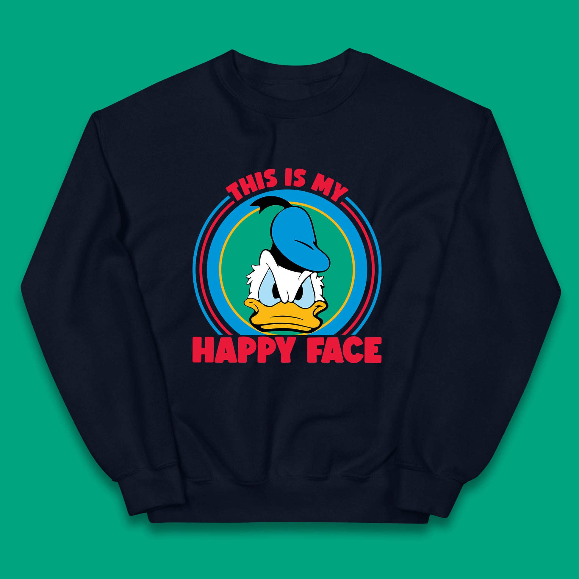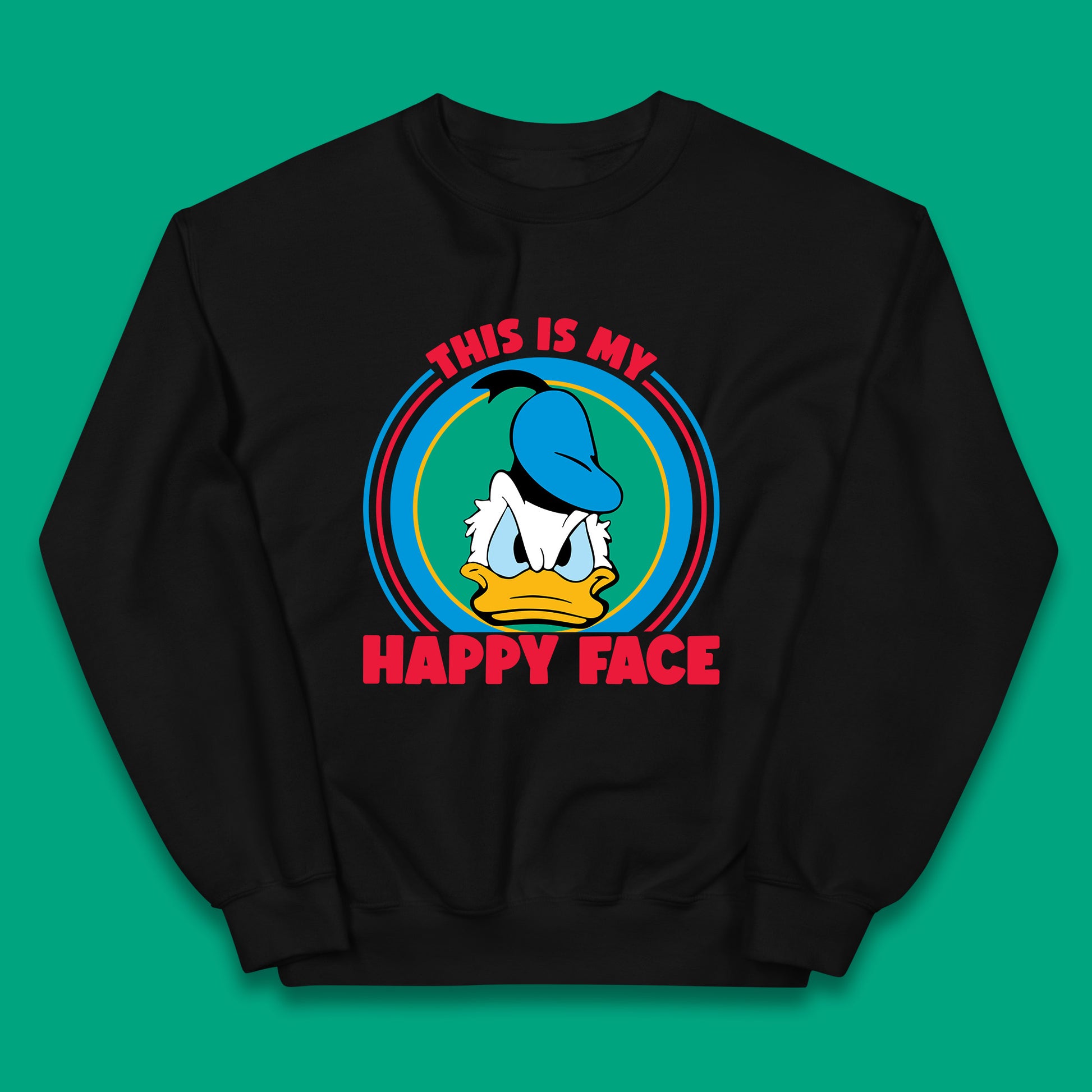 This Is My Happy Face Donald Duck Funny Animated Cartoon Character Angry Duck Disneyland Trip Disney Vacations Kids Jumper