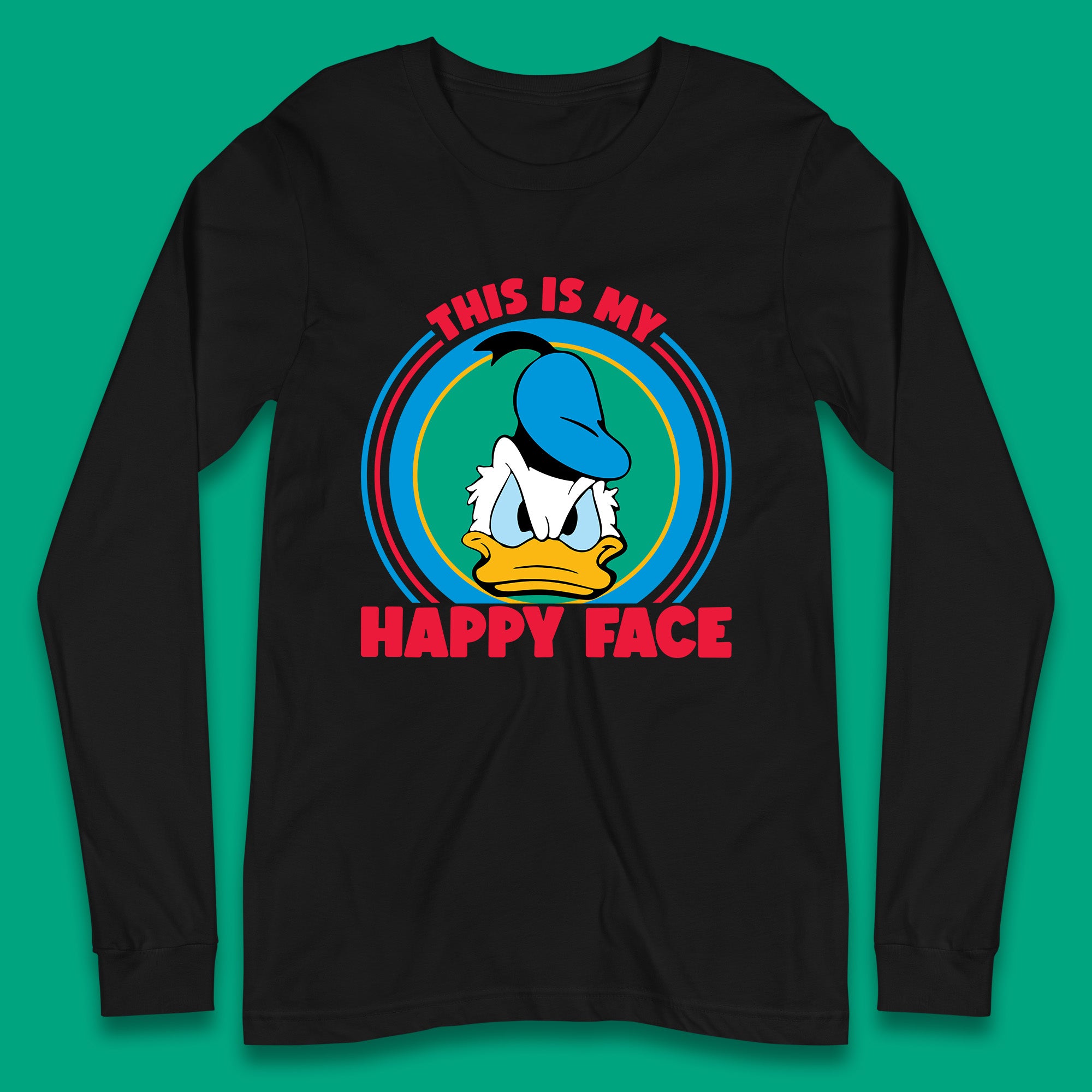 This Is My Happy Face Donald Duck Funny Animated Cartoon Character Angry Duck Disneyland Trip Disney Vacations Long Sleeve T Shirt