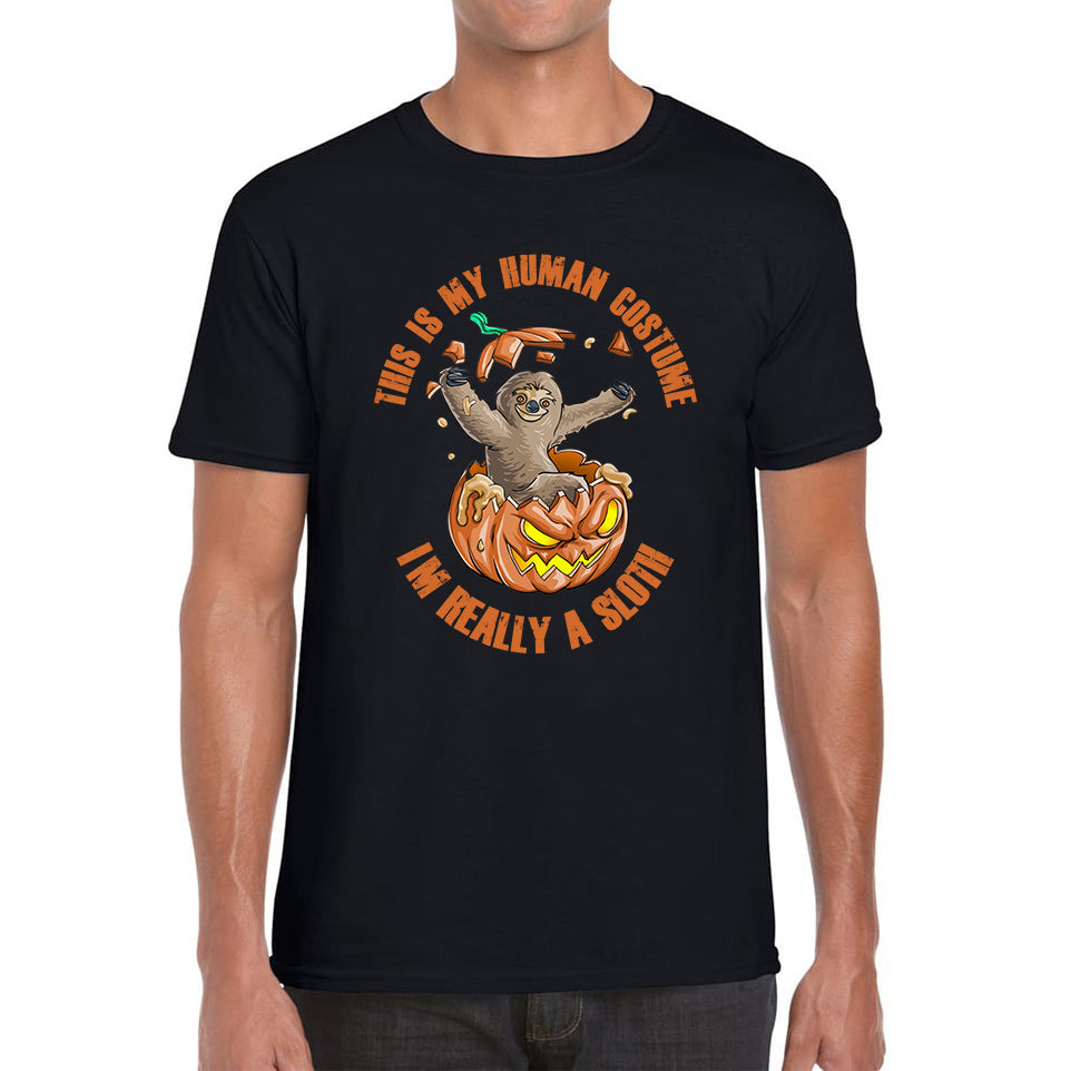 This Is My Human Costume I'm Really A Sloth Halloween Pumpkin Horror And Scary Pumpkin Face Mens Tee Top
