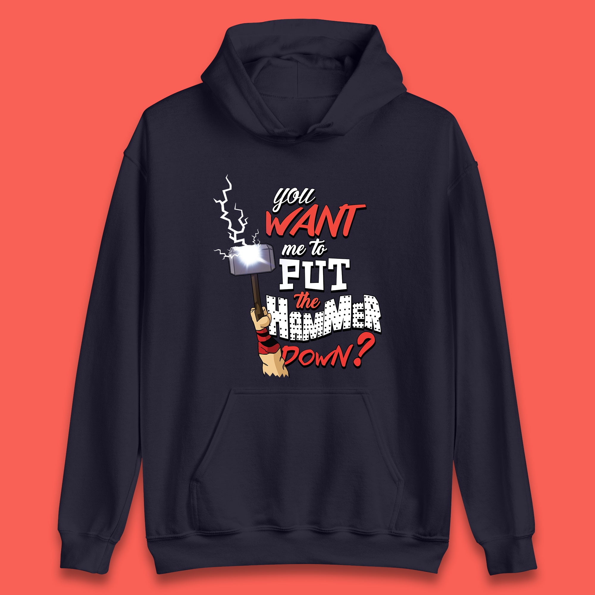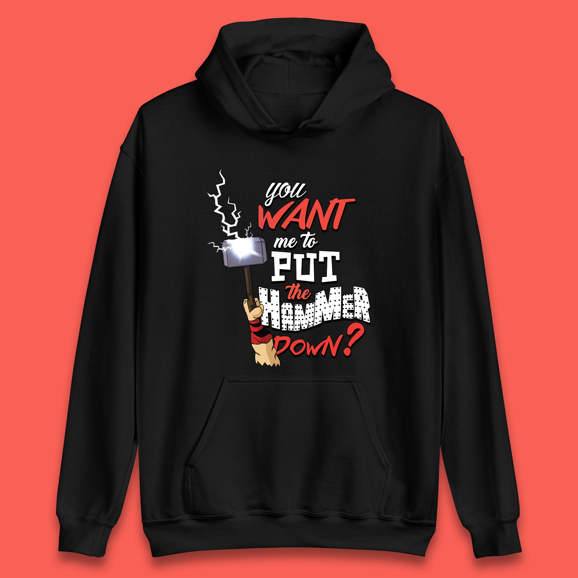 Thor Quote You Want Me To Put The Hammer Down? Thor Hammer Marvel Avengers Superheros Movie Character Unisex Hoodie