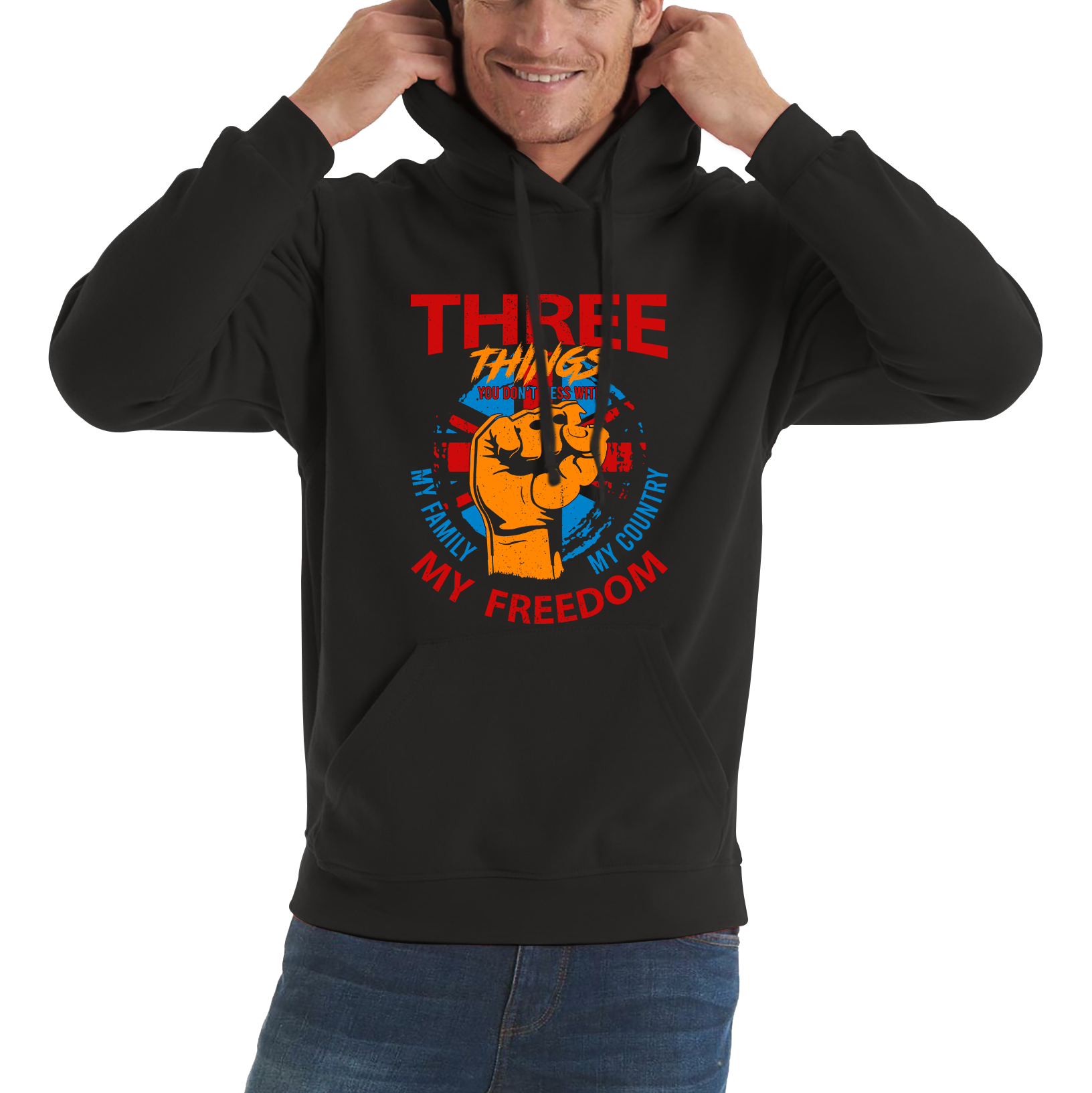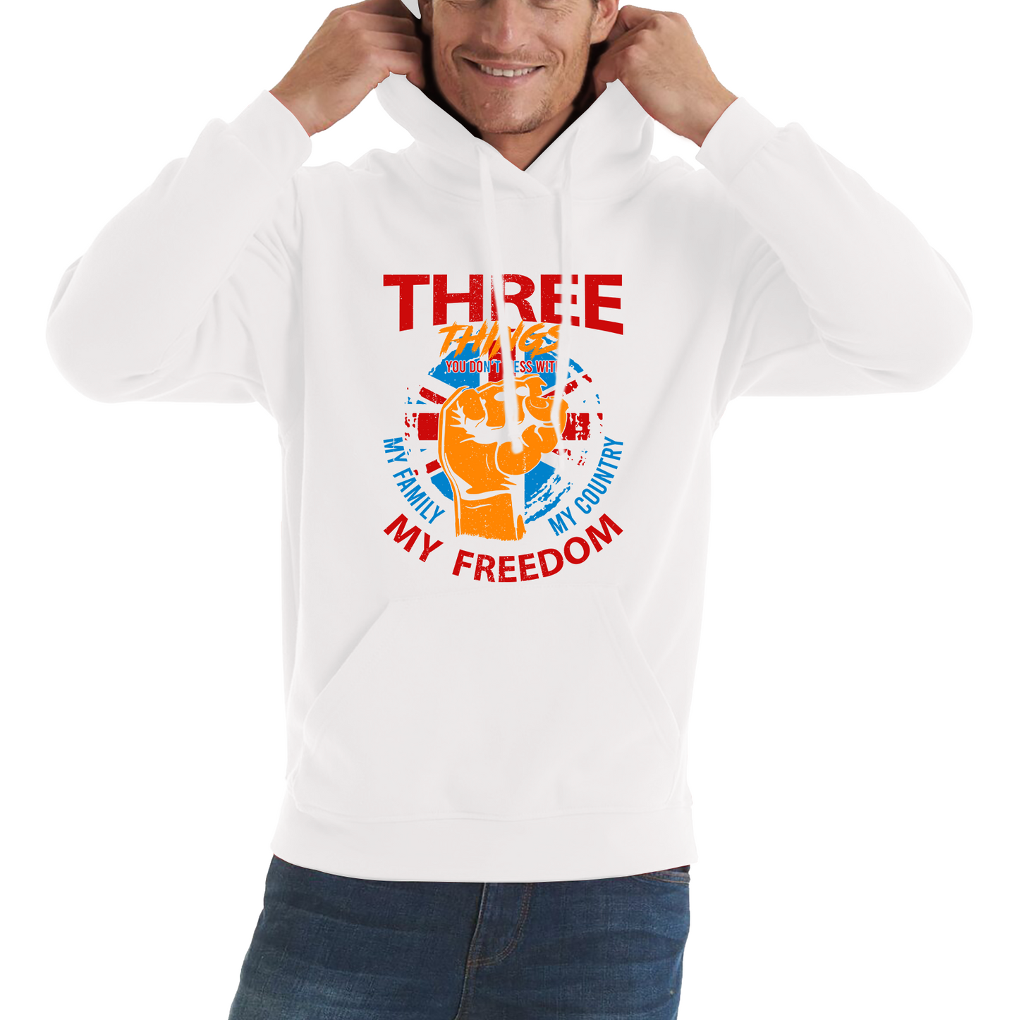 Three Things You Don't Mess With My Family My Country And My Freedom United Kingdom Flag Patriotic Unisex Hoodie
