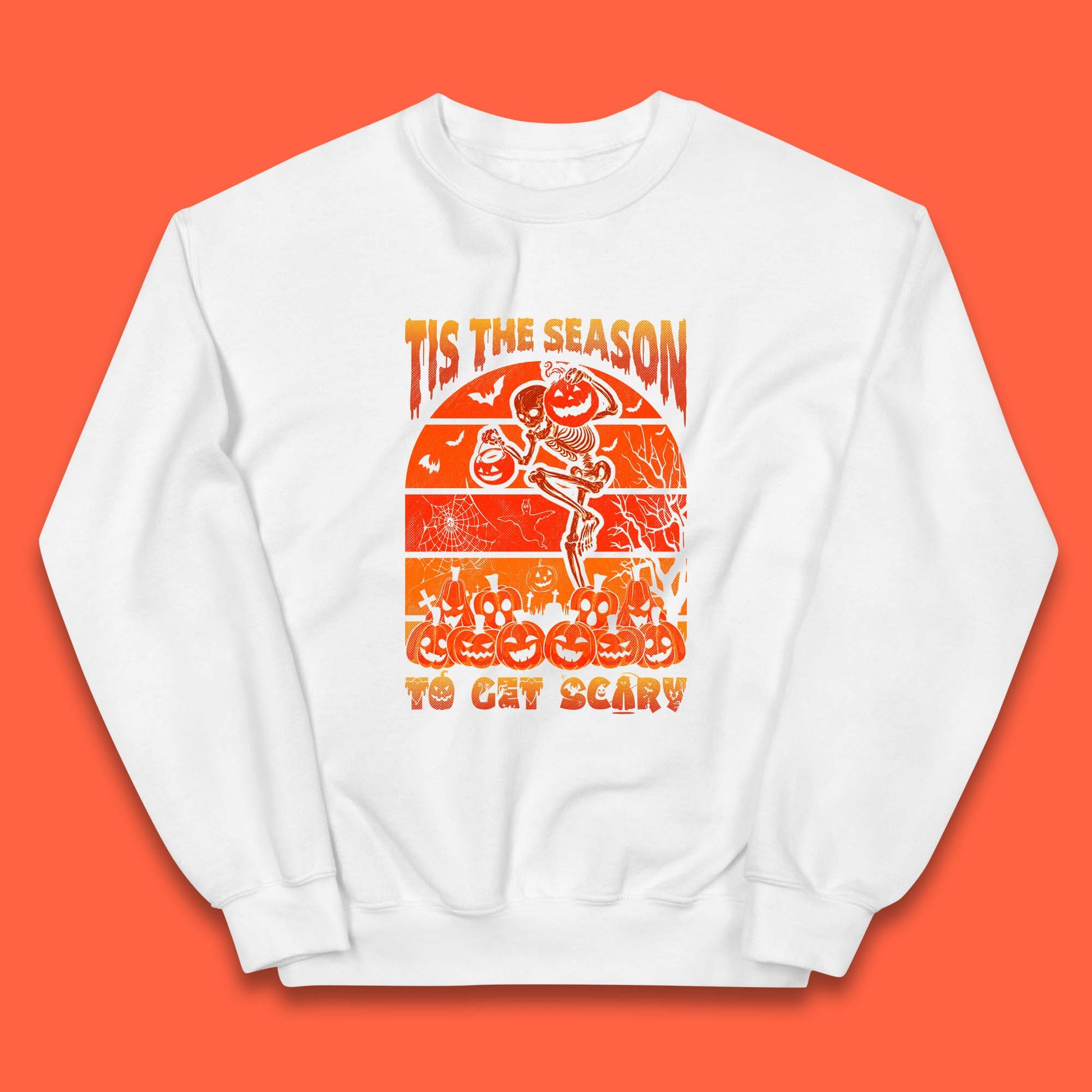 Tis The Season To Get Scary Halloween Skeleton Holding Pumpkin Buckets Spooky Vibes Kids Jumper