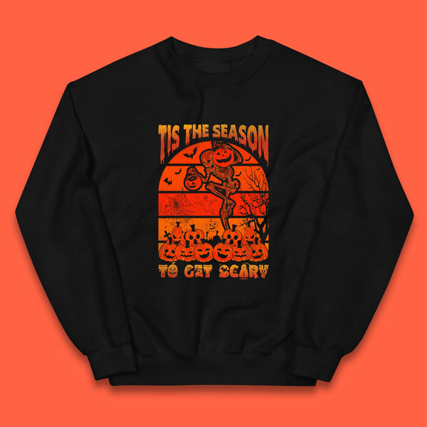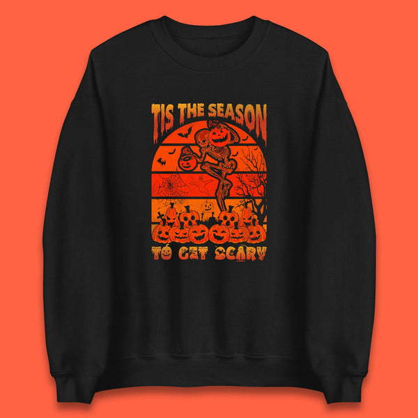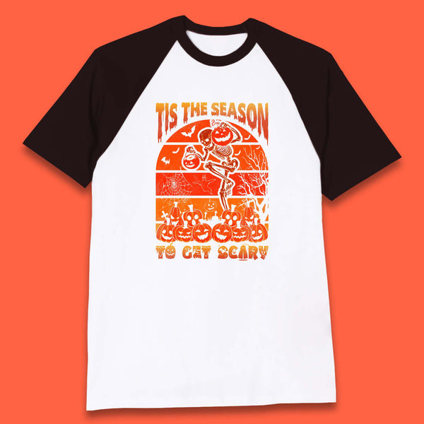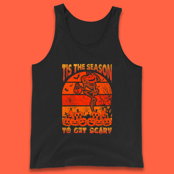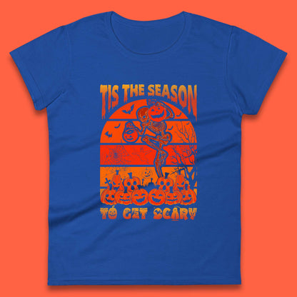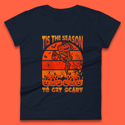 Tis The Season To Get Scary Halloween Skeleton Holding Pumpkin Buckets Spooky Vibes Womens Tee Top