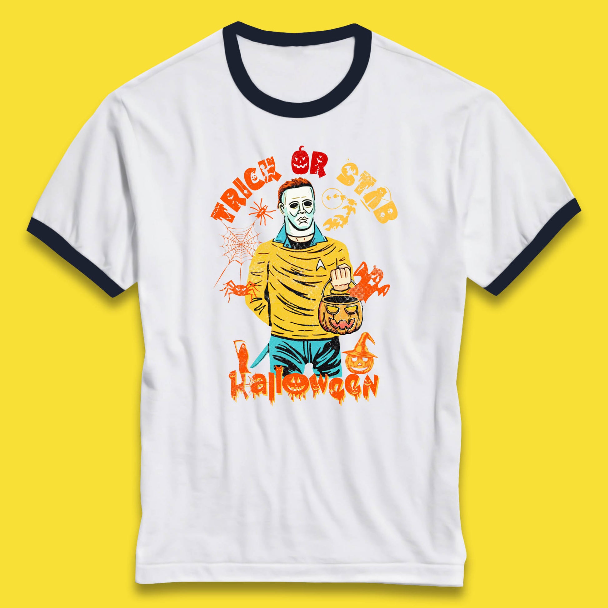 Trick Or Stab Halloween Michael Myers Stab Trek Trick Or Treat Ringer T Shirt