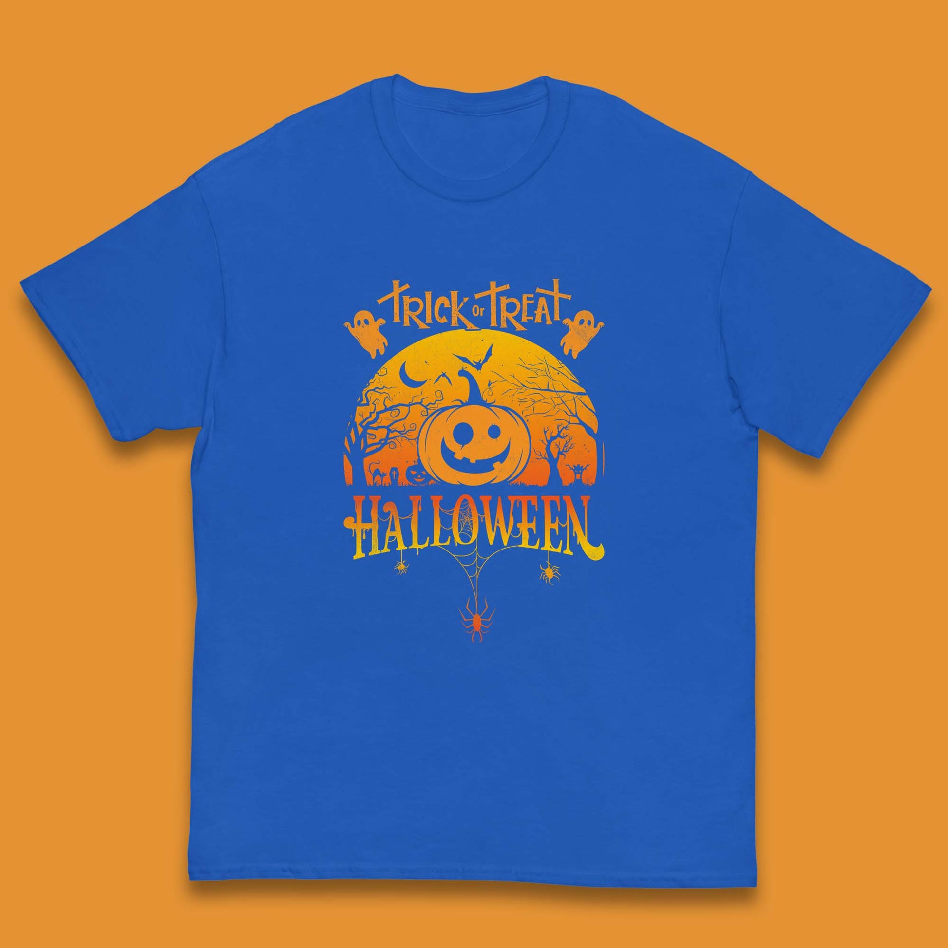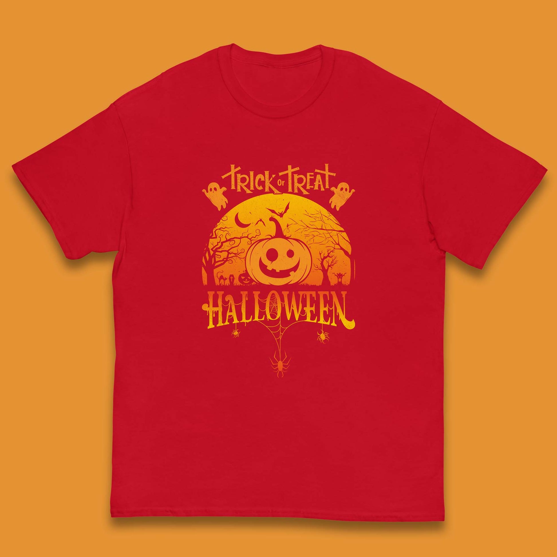 Trick Or Treat Halloween Pumpkin Haunted Trees Scary Spooky Season Kids T Shirt