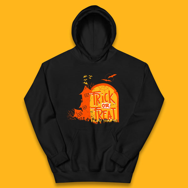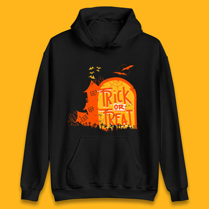 Trick Or Treat Halloween Terrific Abandoned Haunted House Flying Bats Unisex Hoodie