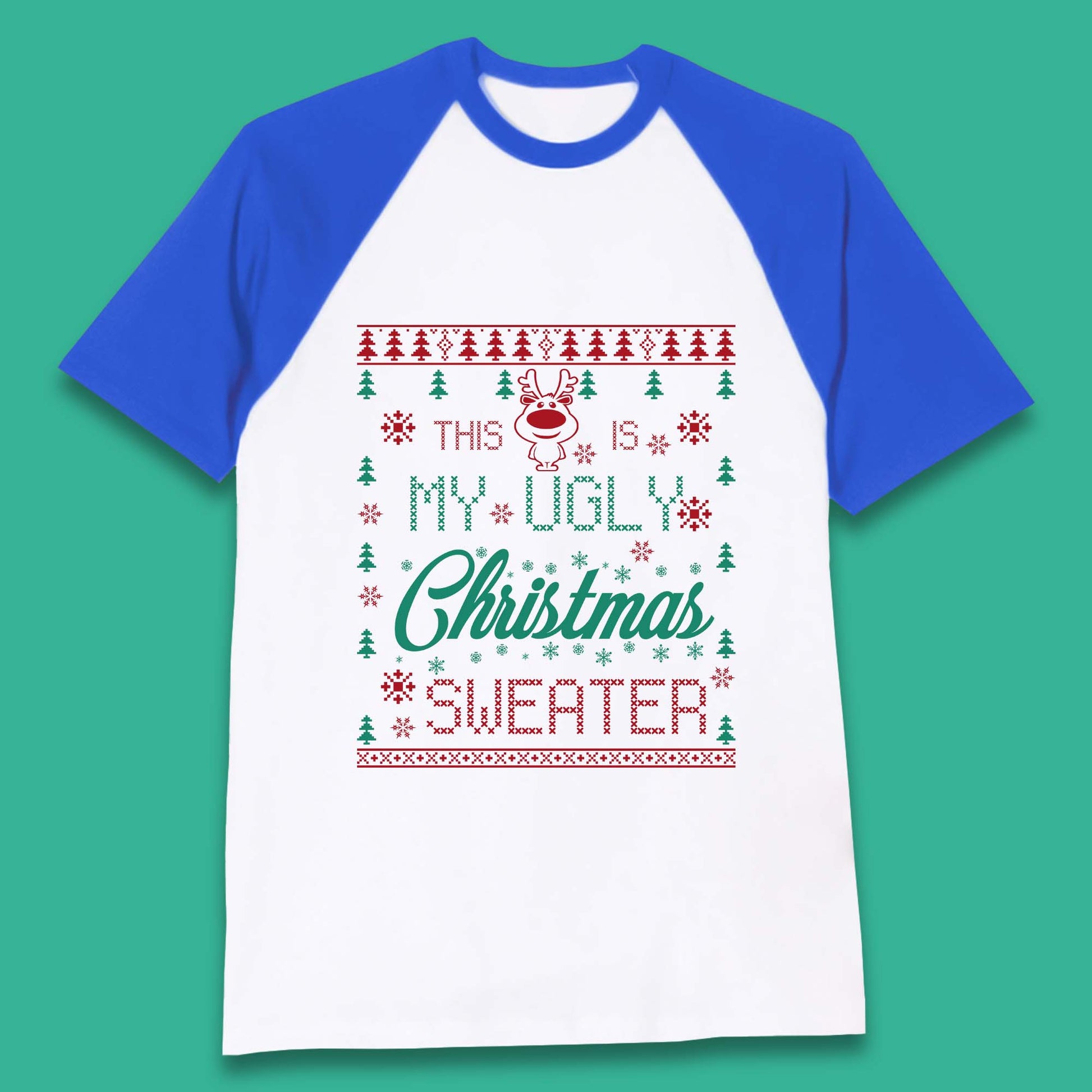 Ugly Christmas Sweater Reindeer Baseball T-Shirt