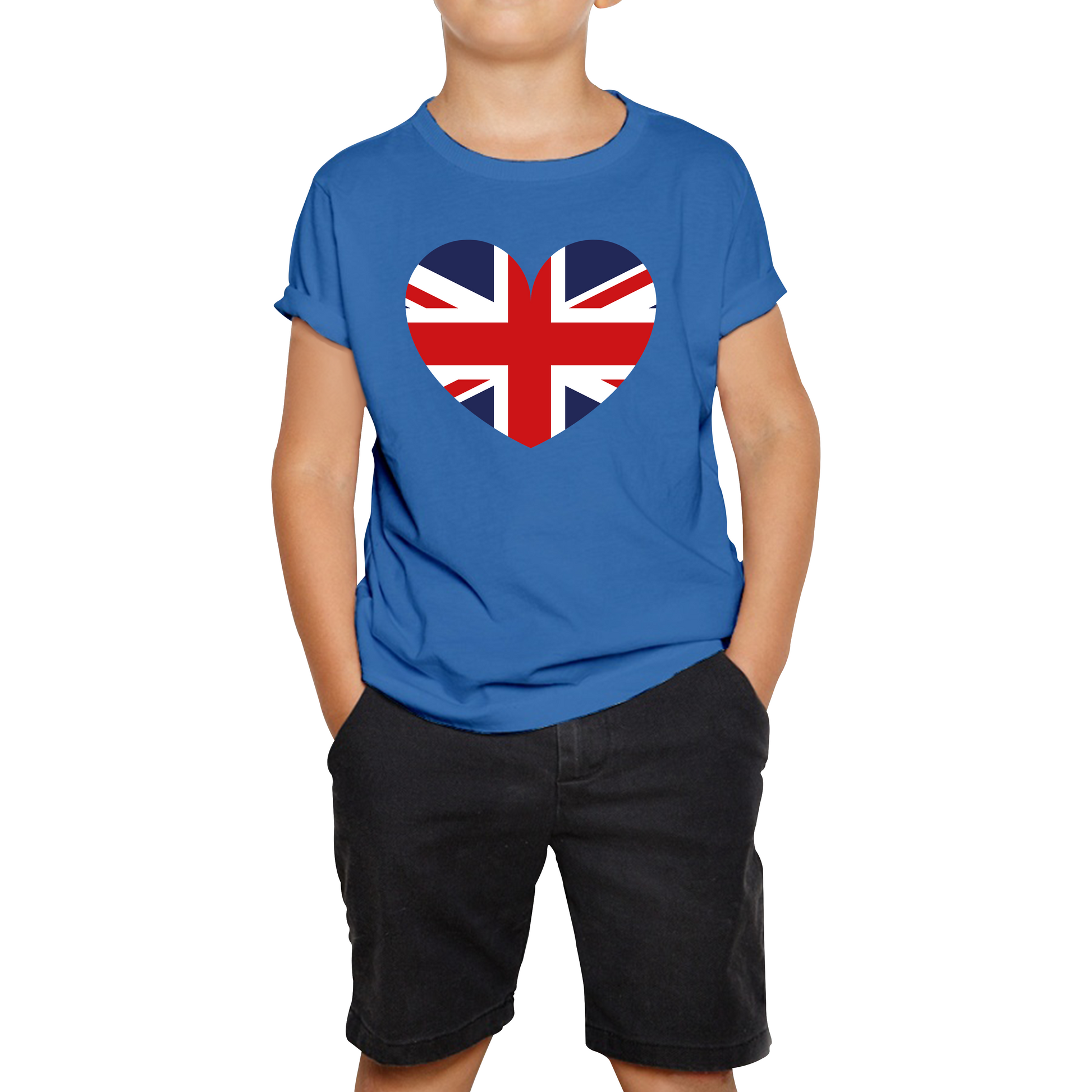 Uk Flag Heart Shape Battle Of Boyne's Queen Platinum Jubilee British Royal Kids Tee