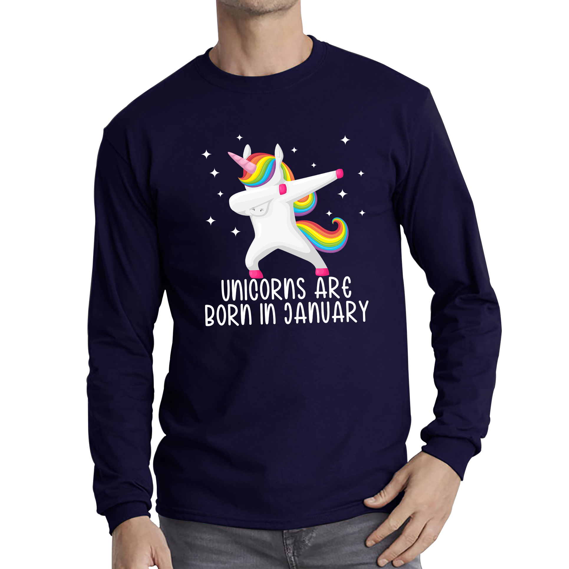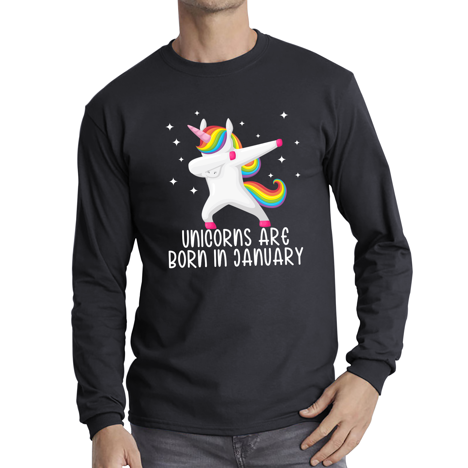 Unicorns Are Born In January Dabbing Unicorn Funny Birthday Month Novelty Slogan Long Sleeve T Shirt