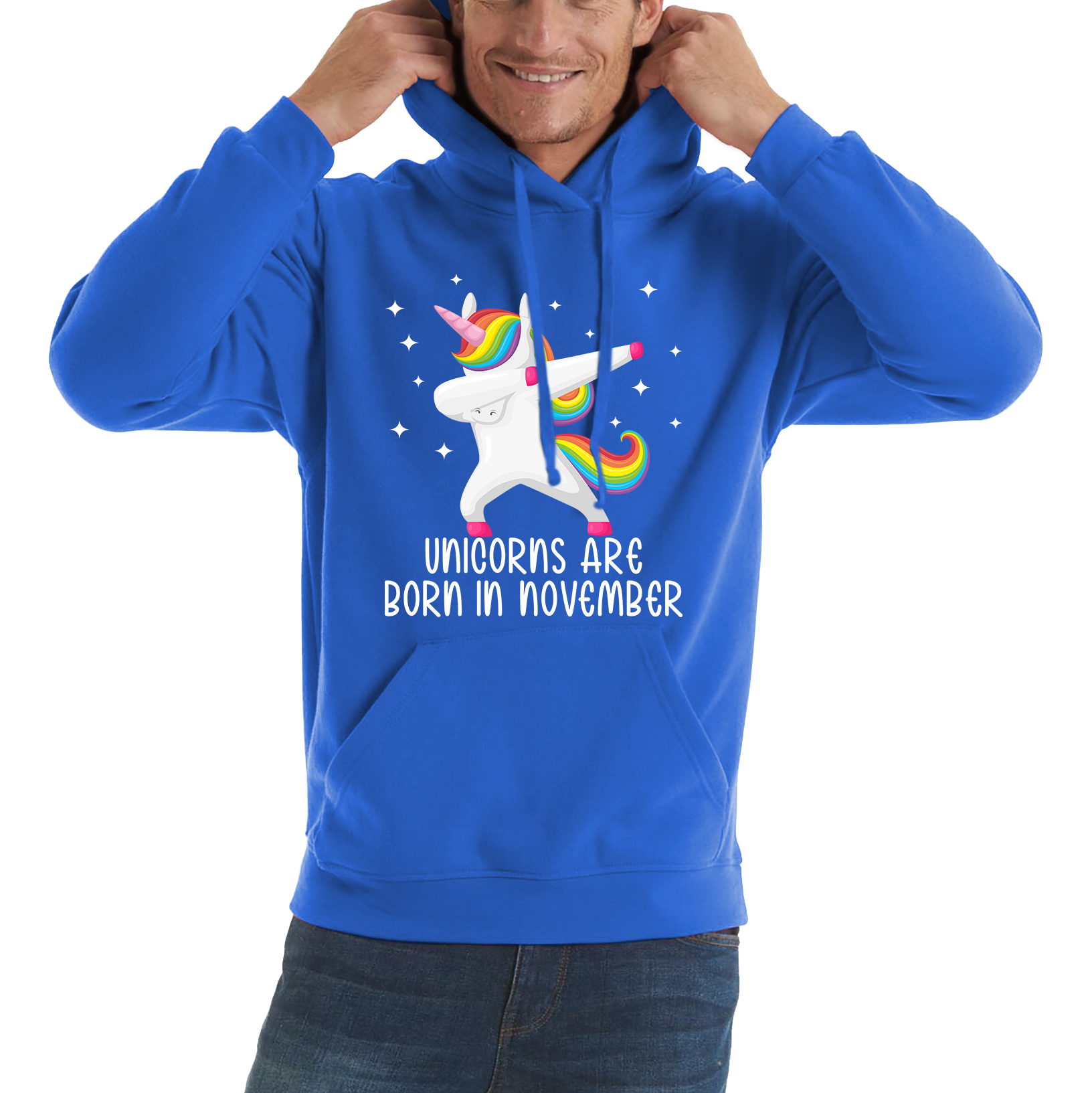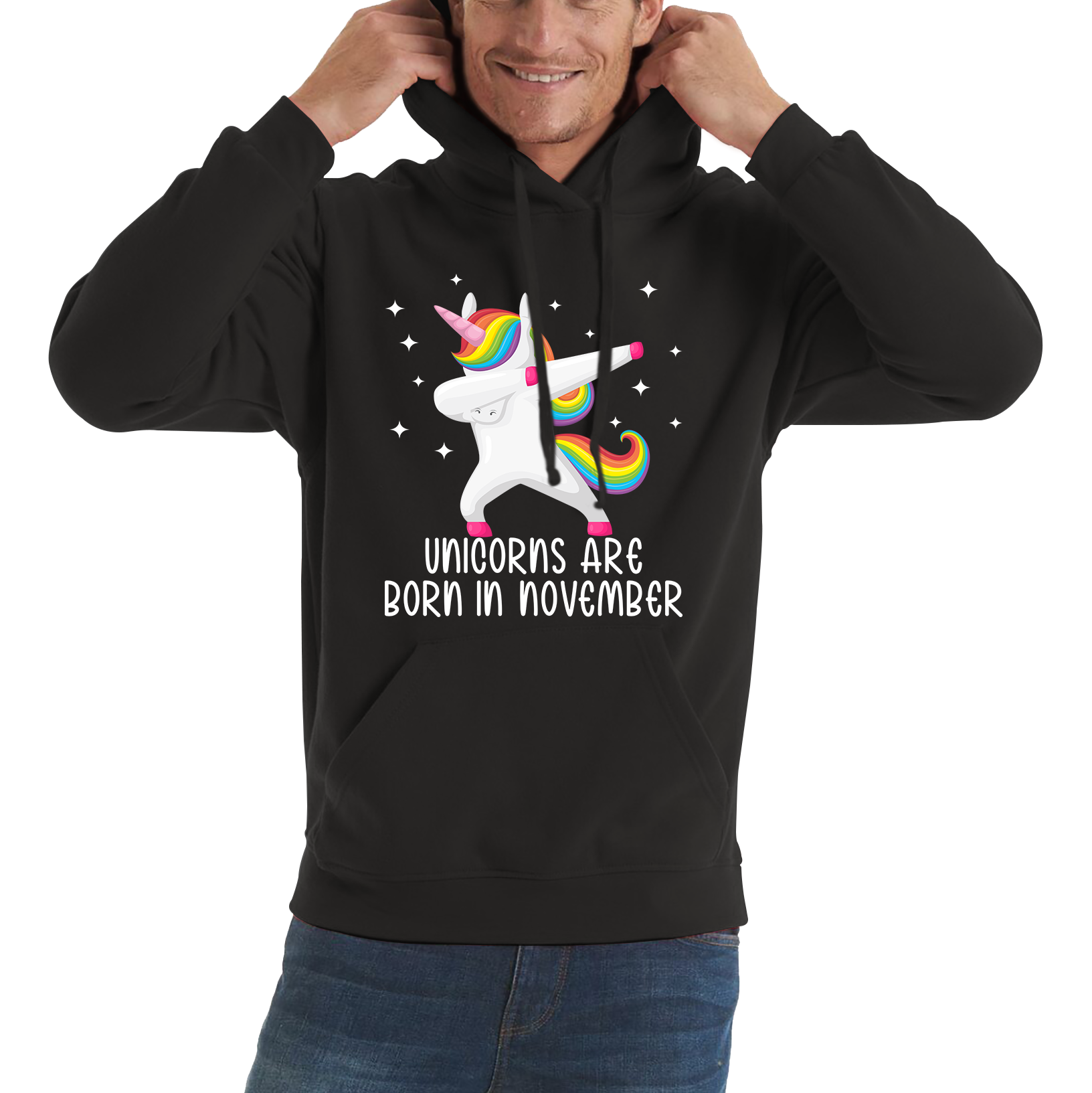 Unicorns Are Born In November Dabbing Unicorn Funny Birthday Month Novelty Slogan Unisex Hoodie