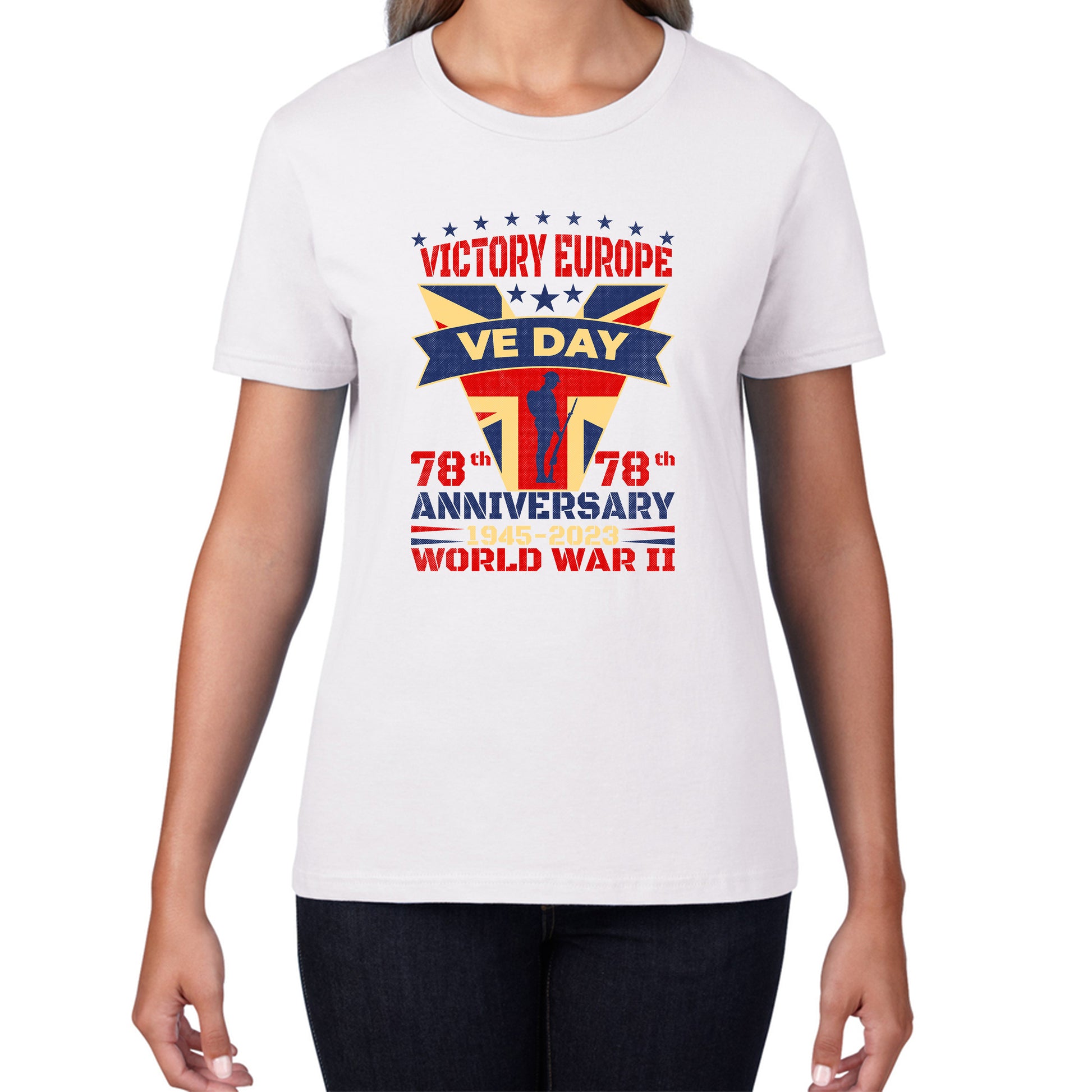 VE Day Victory In Europe Day Lest We Forget 1945-2023 World War II 78th Anniversary Remembrance Day British UK Veterans Womens Tee Top