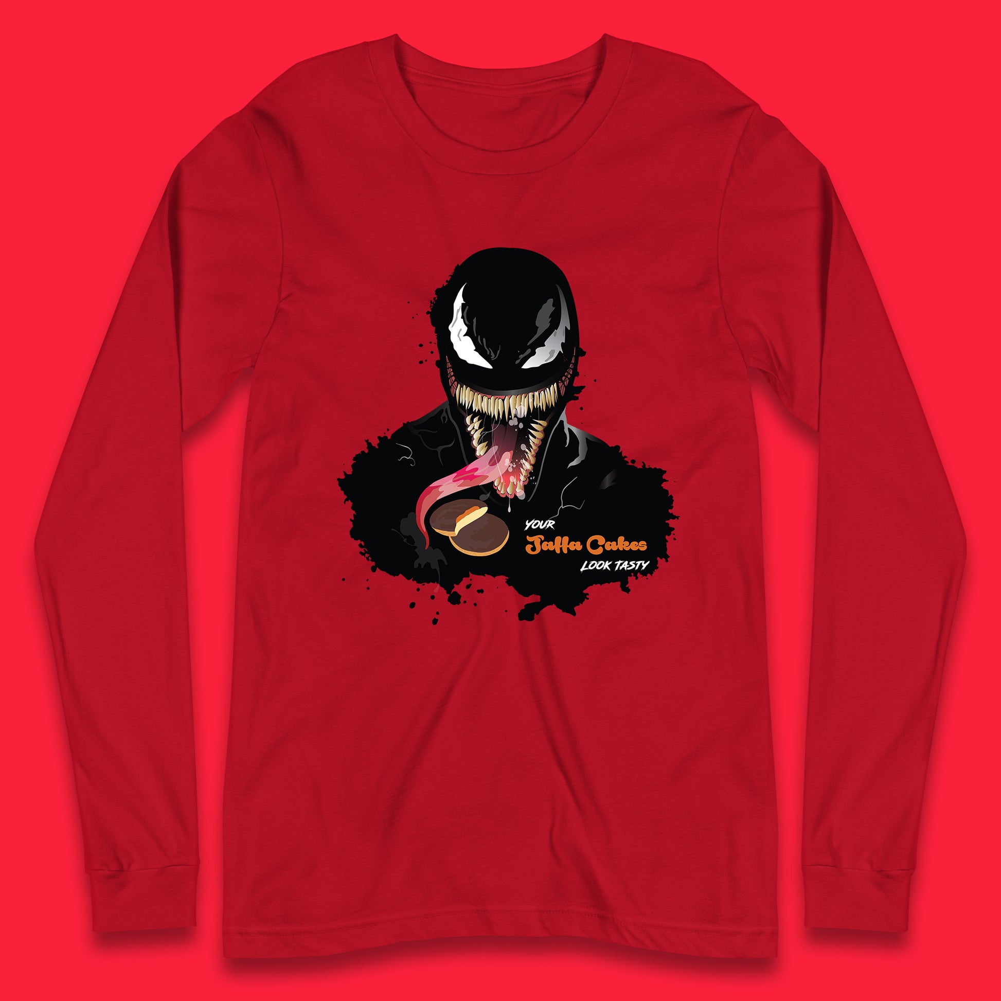 Venom Your Jaffa Cakes Look Tasty Marvel Avengers Venom Face Marvel Comics Movie Character Long Sleeve T Shirt