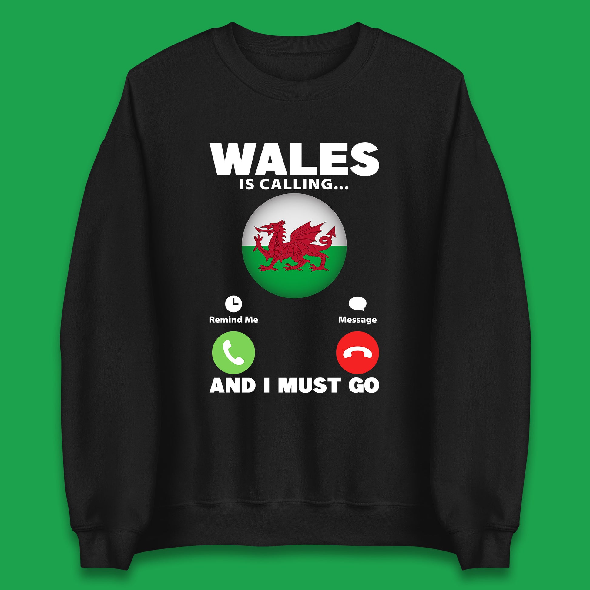 Wales Is Calling And I Must Go Funny Welsh Phone Screen Wales Vacation Welsh Adventure Calling Humor Unisex Sweatshirt