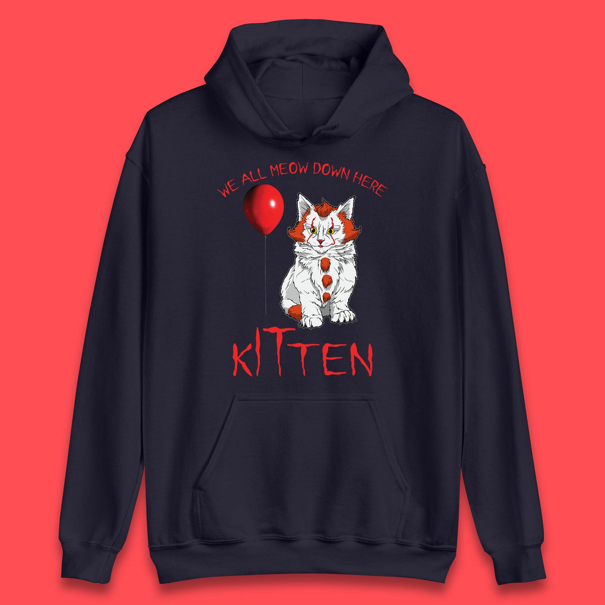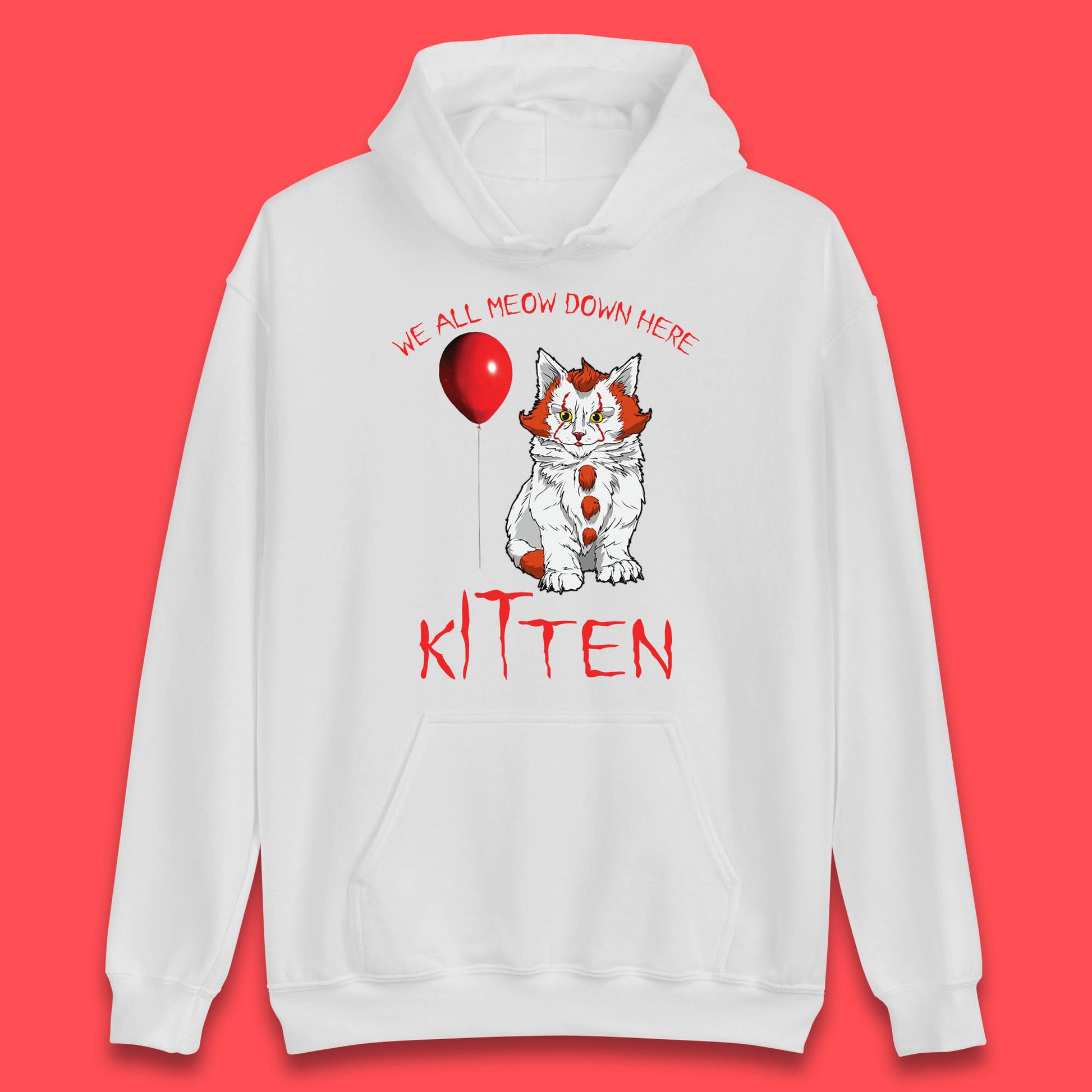We All Meow Down Here Kitten Clown Cat Halloween IT Pennywise Clown Movie Mashup Parody Unisex Hoodie