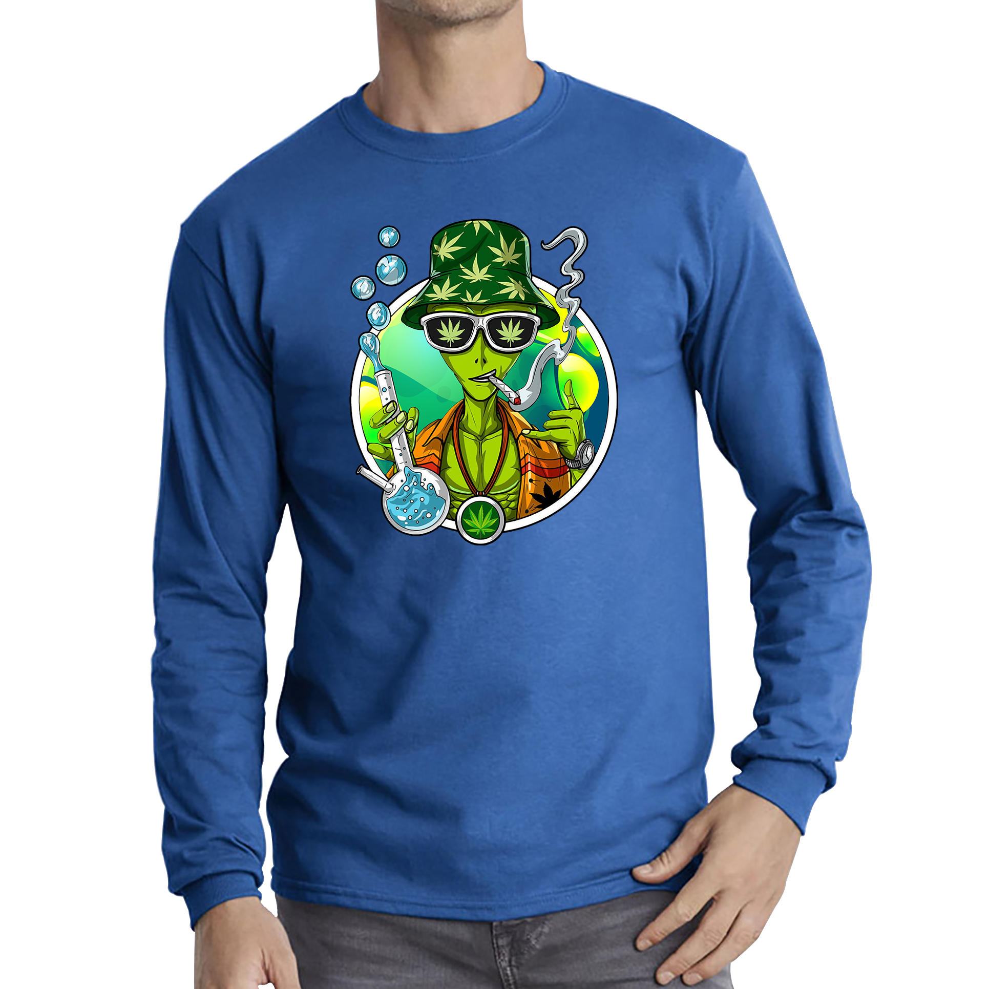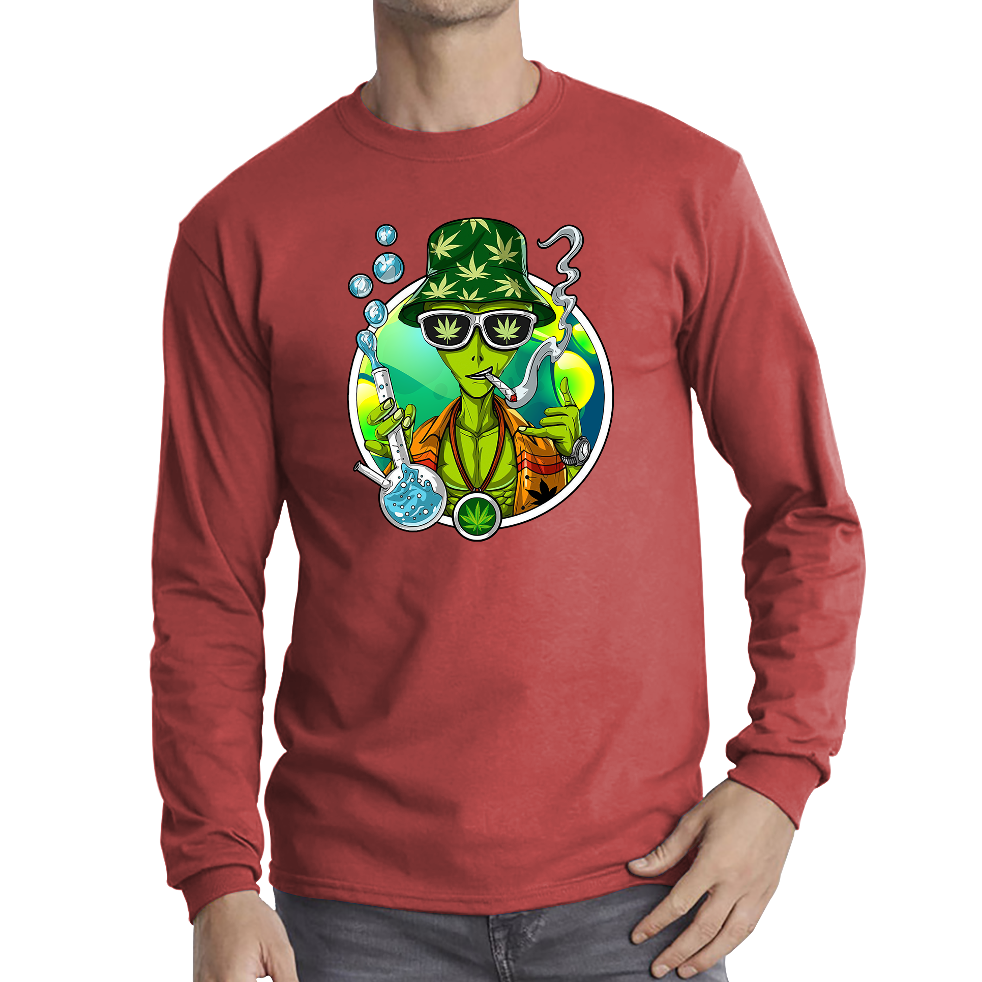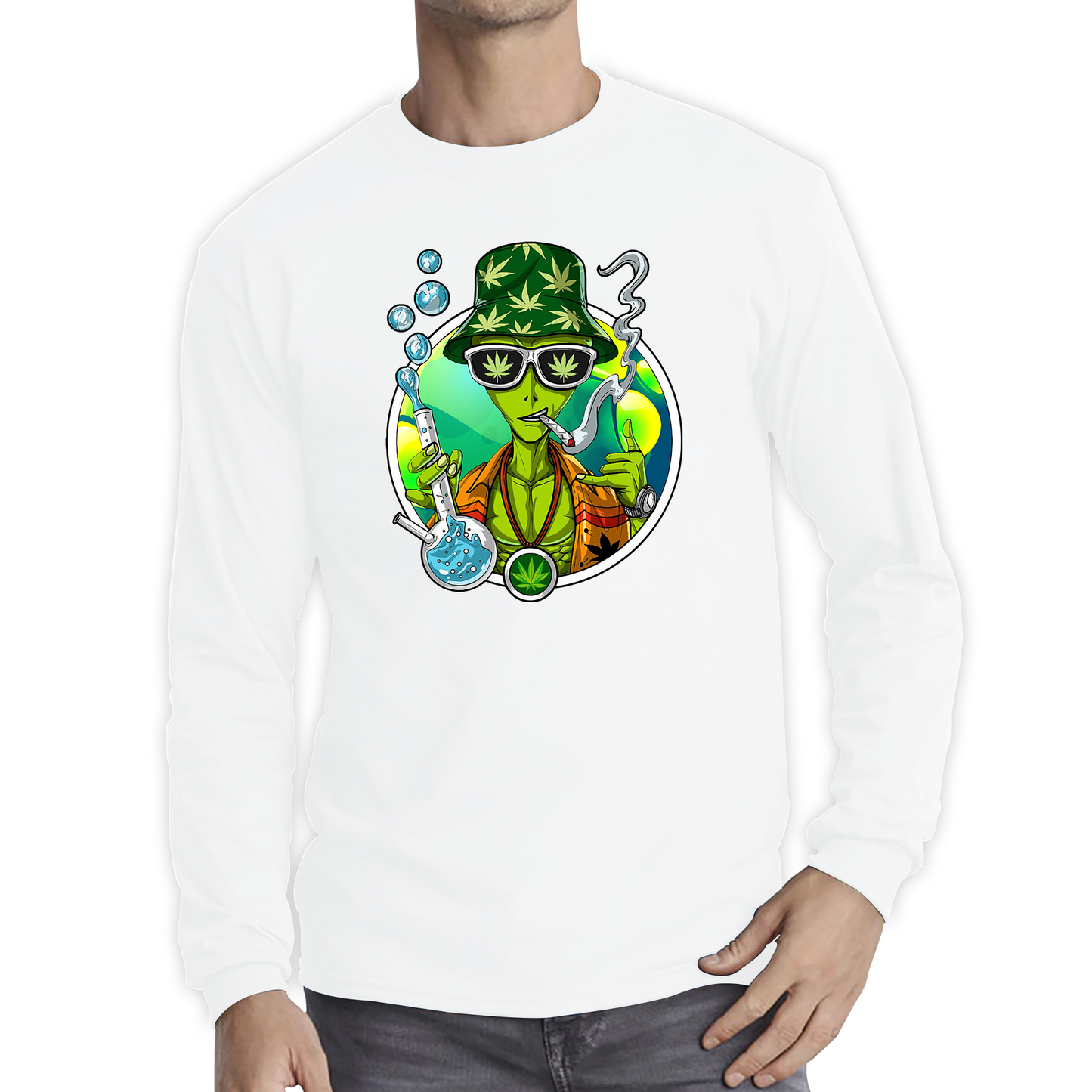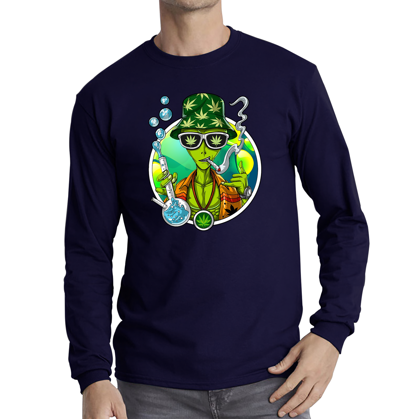 Alien Stoner Smoking Funny Long Sleeve T Shirt