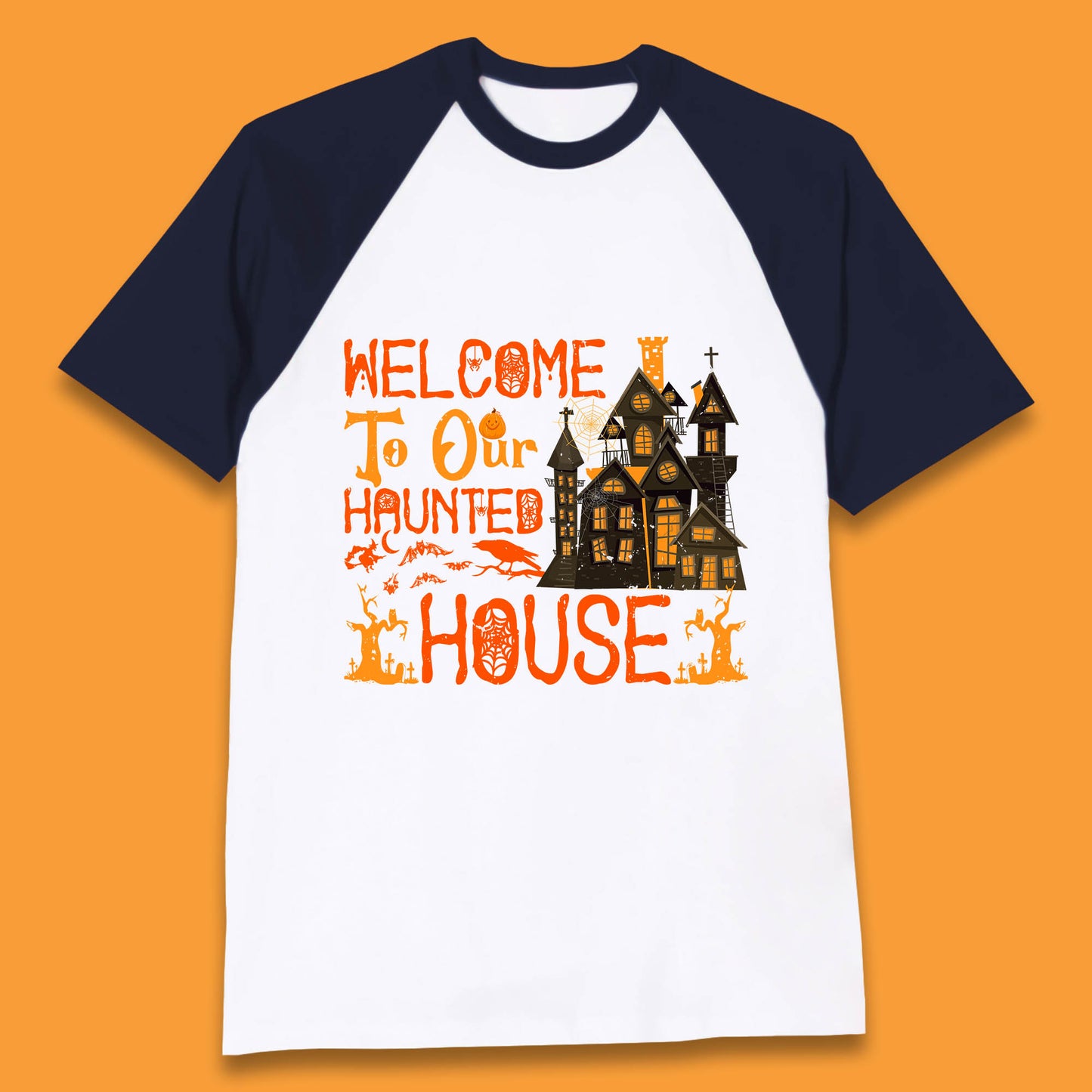 Welcome To Our Haunted House Halloween Horror Scary Spooky House Baseball T Shirt