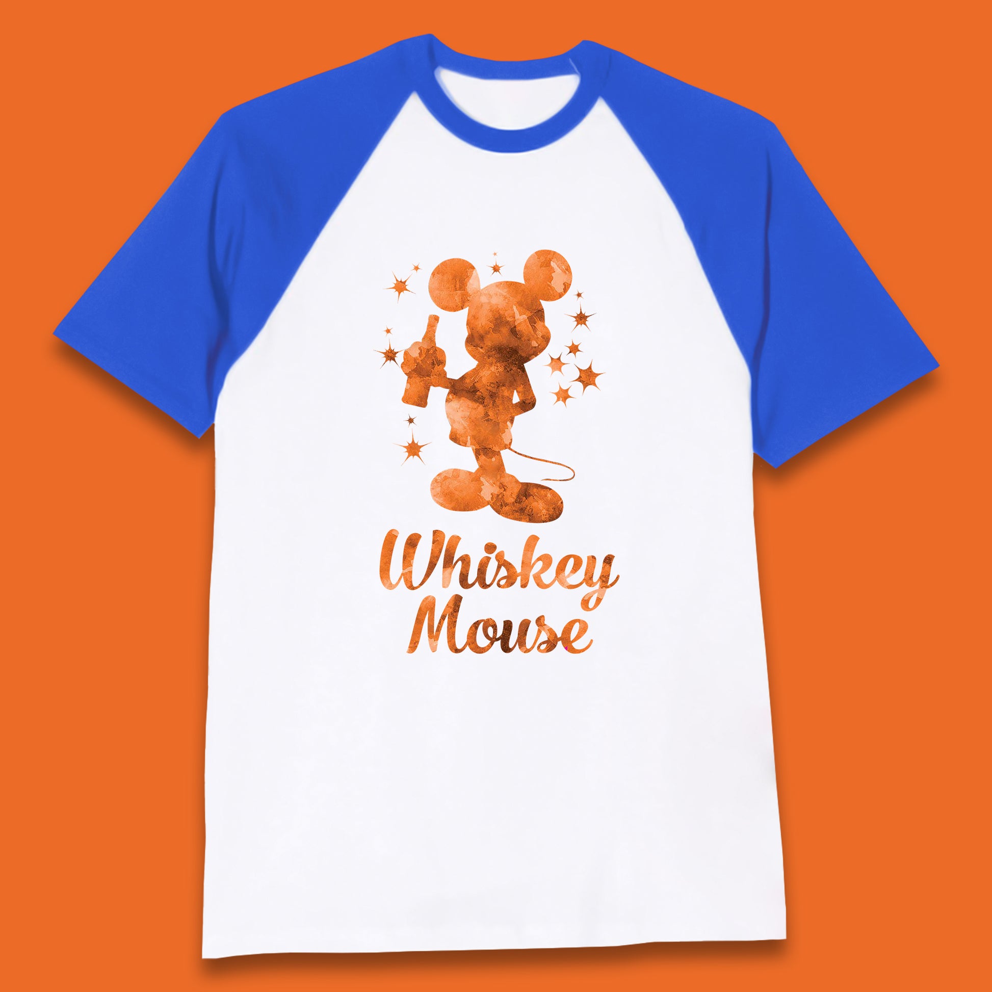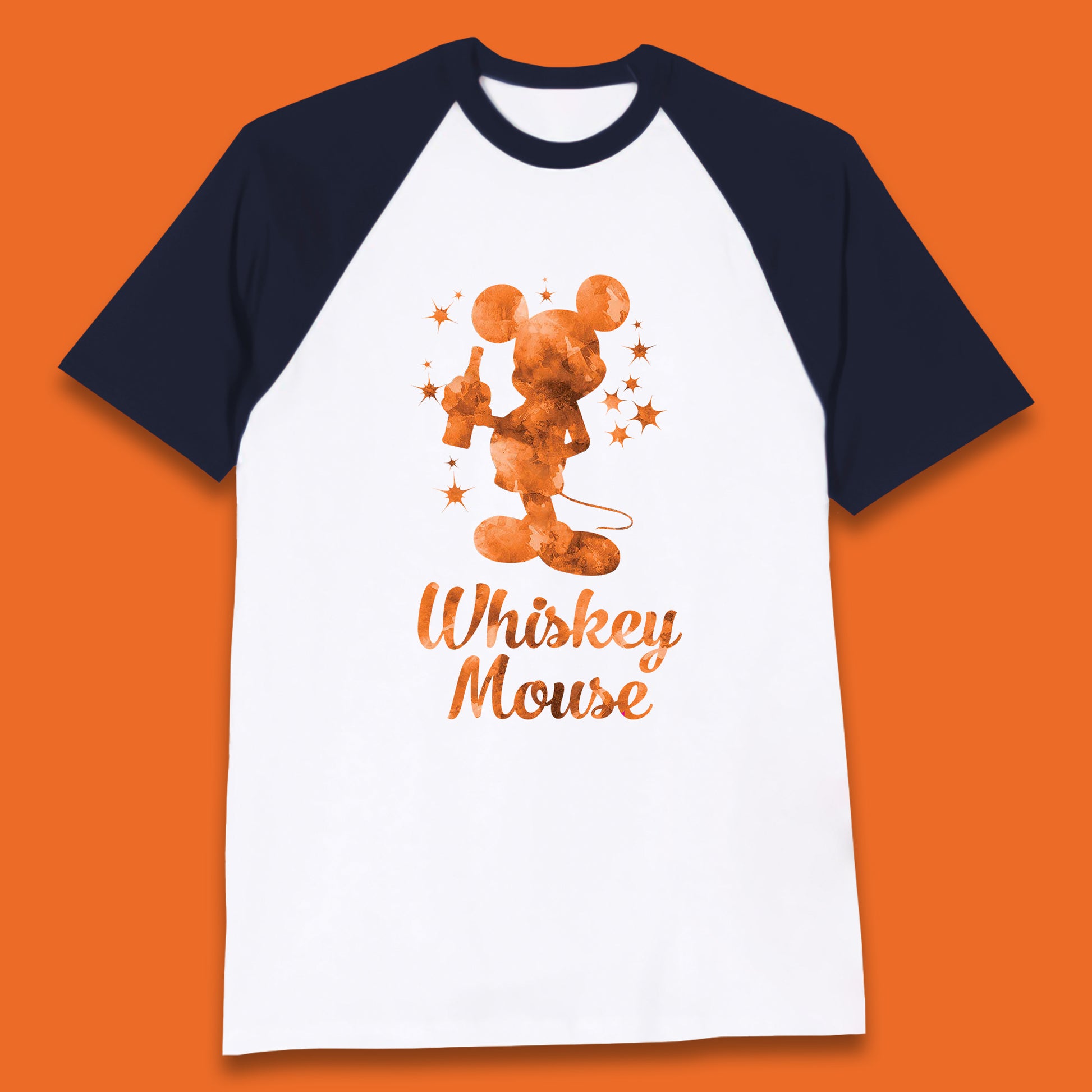 Whiskey Mouse Mickey Minnie Mouse Cartoon Character Holding Beer Bottle Disneyland Whiskey Lovers Baseball T Shirt
