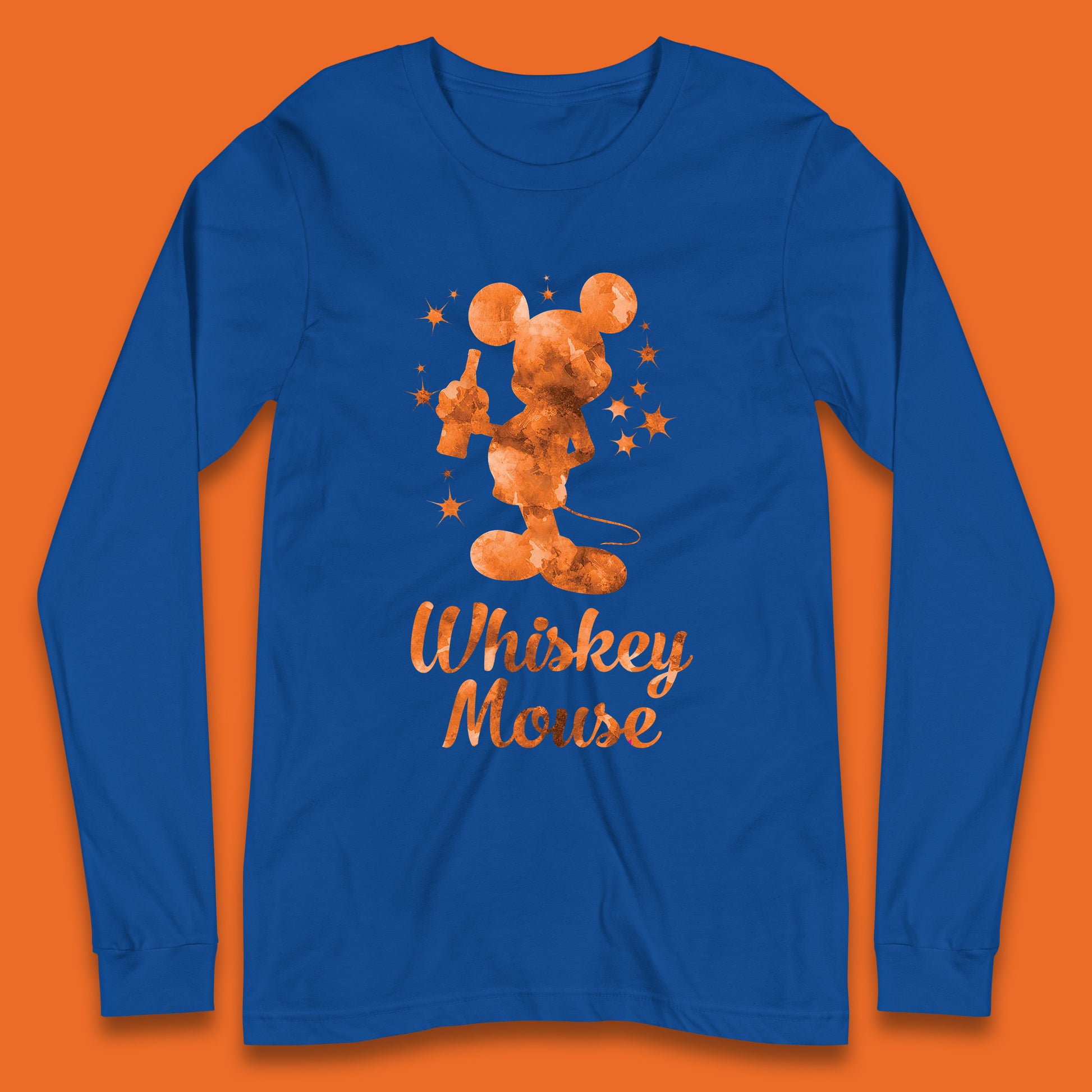 Whiskey Mouse Mickey Minnie Mouse Cartoon Character Holding Beer Bottle Disneyland Whiskey Lovers Long Sleeve T Shirt