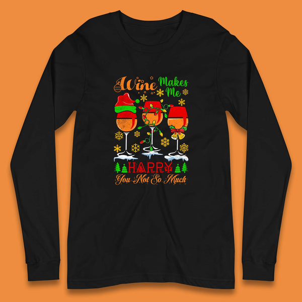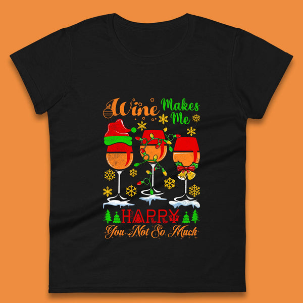 Wine Makes Me Happy Christmas Wine Glasses Womens T Shirt