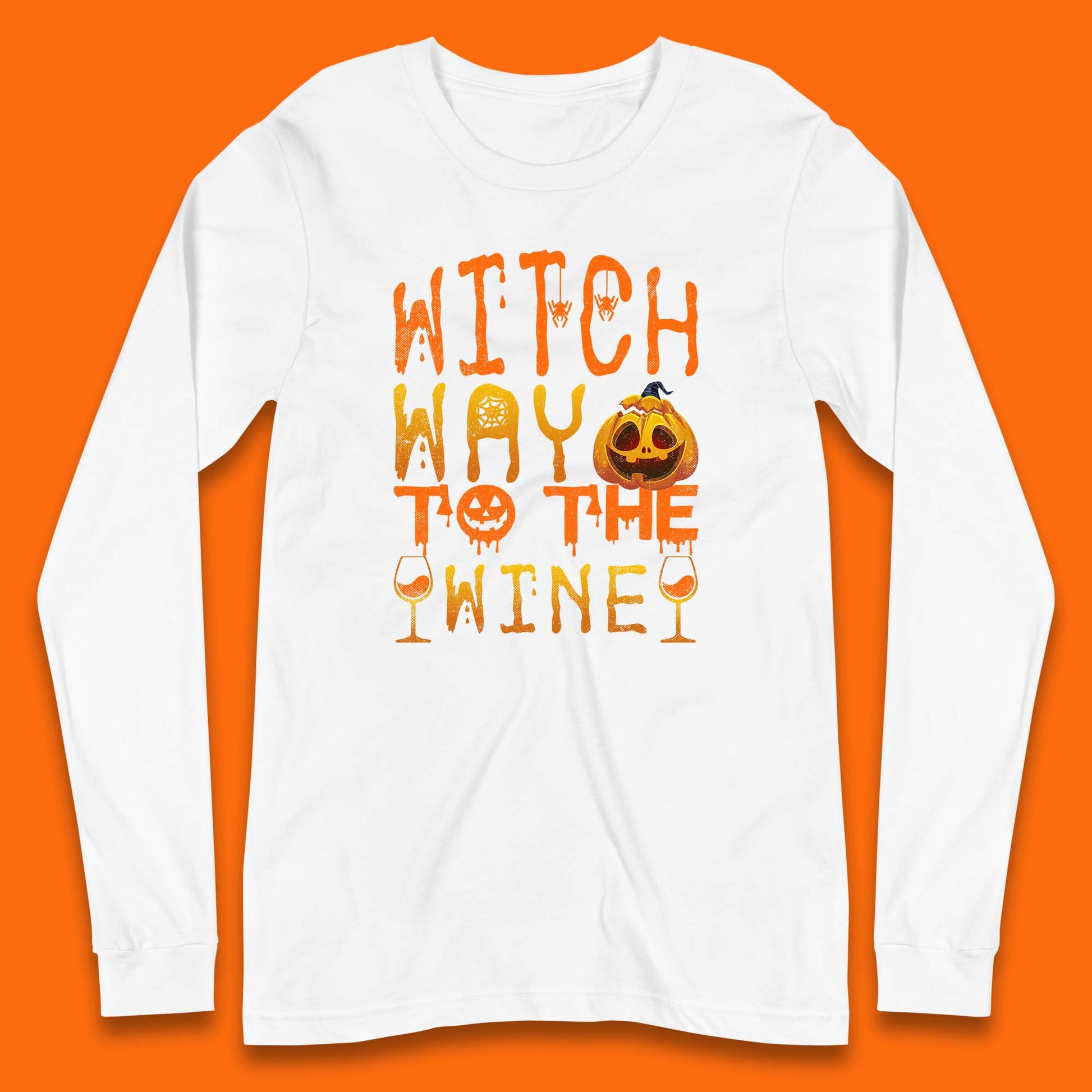 Witch Way To The Wine Funny Halloween Wine Drinking Lover Long Sleeve T Shirt