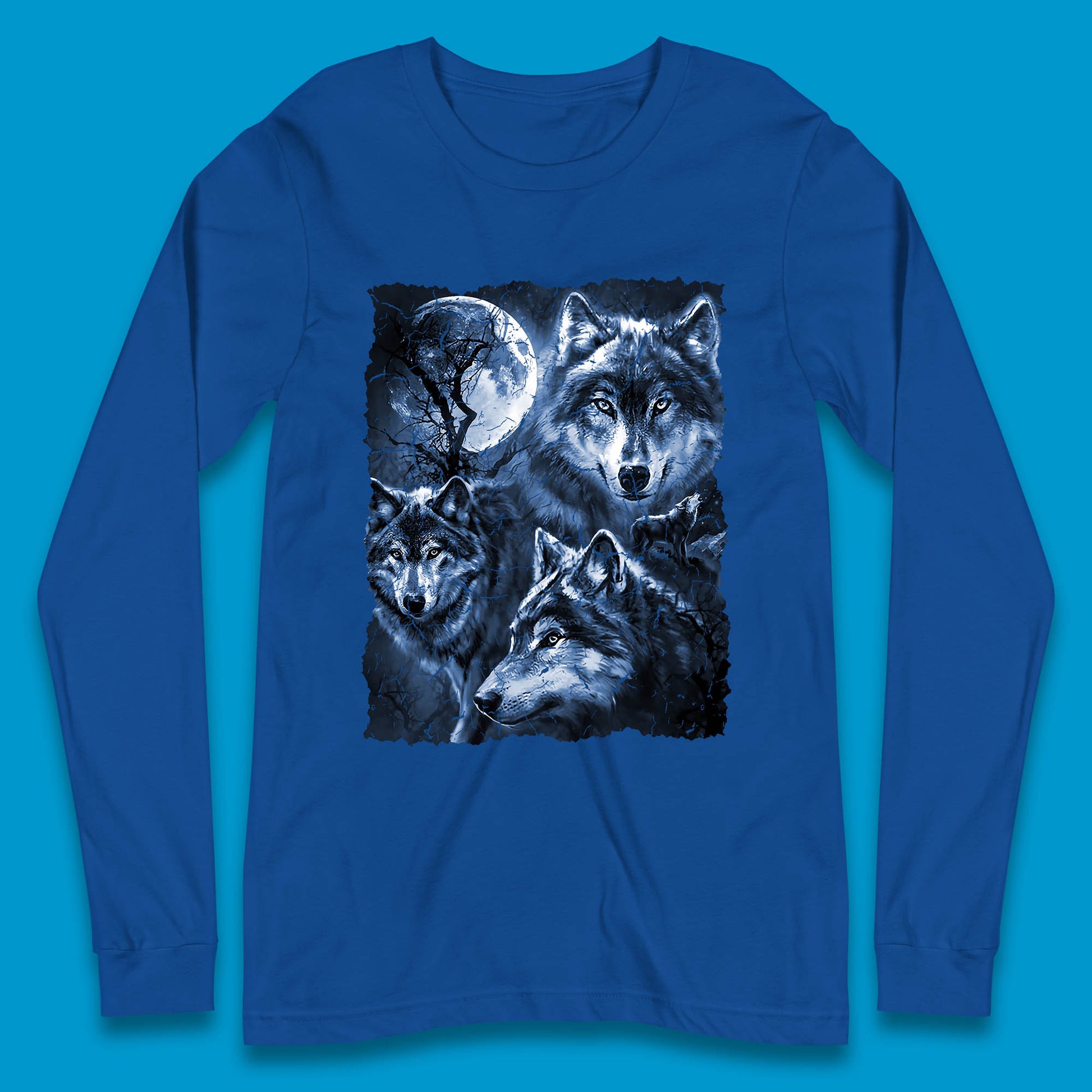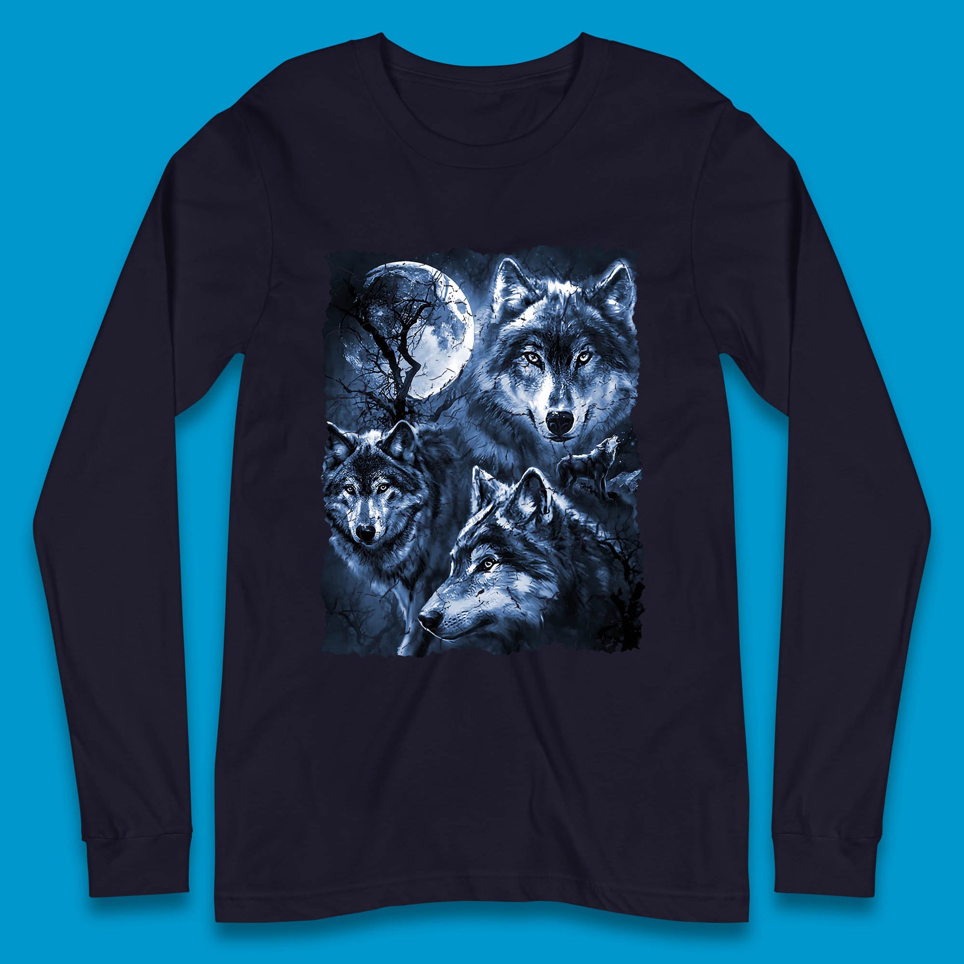 Wolf Family Howling 3 Wolf Moon Wild Free Wolves Three Gray Wolf Dog Animal The Mountain Long Sleeve T Shirt