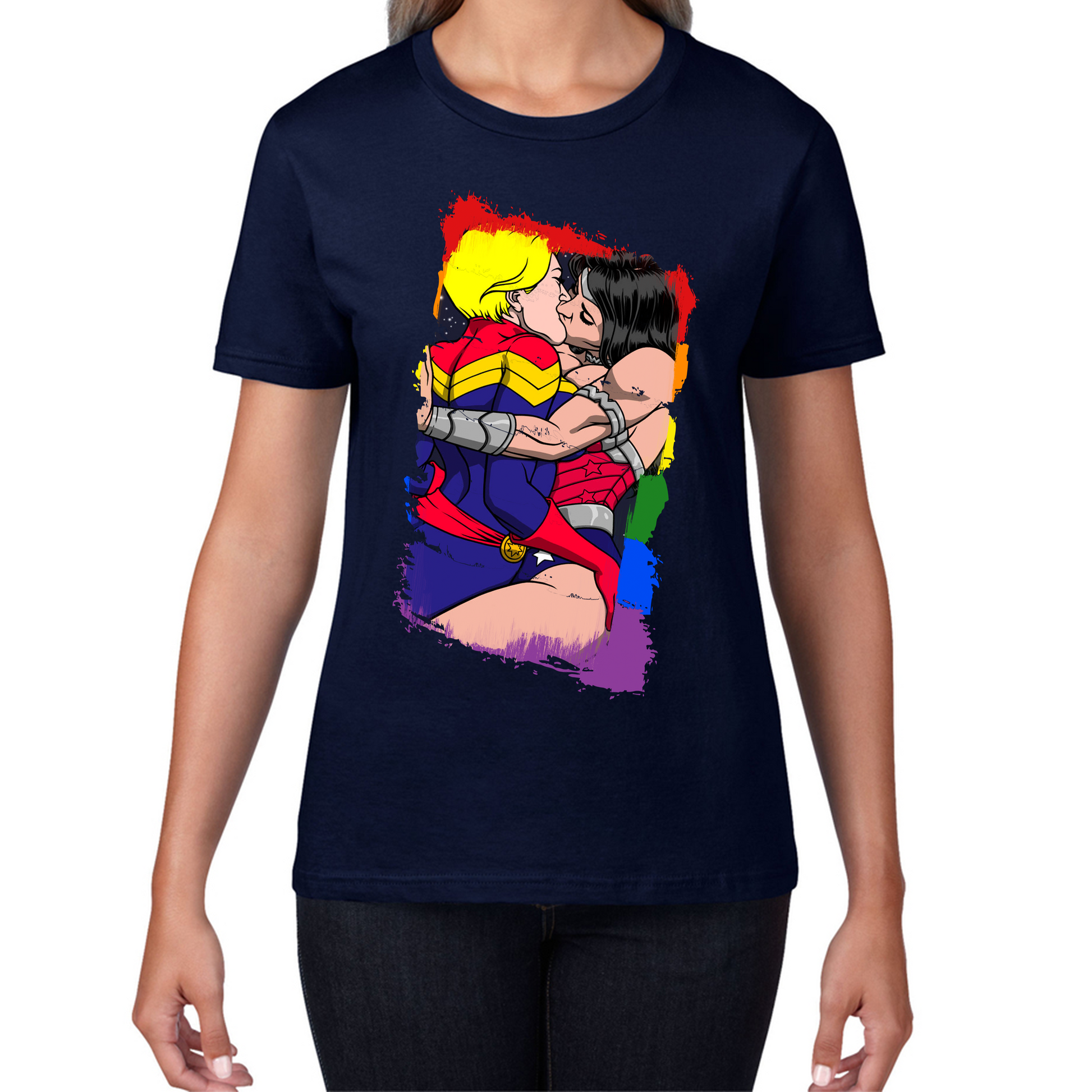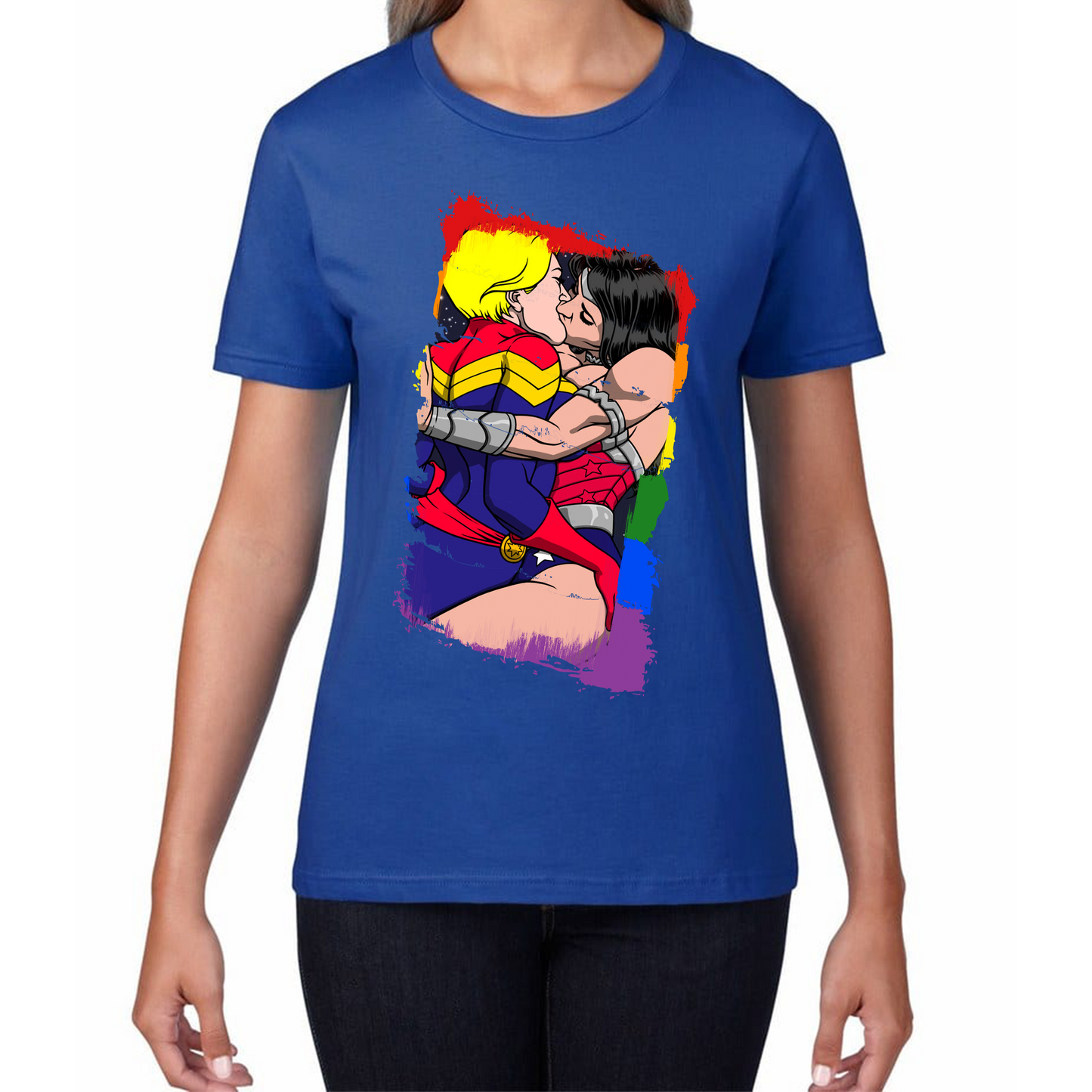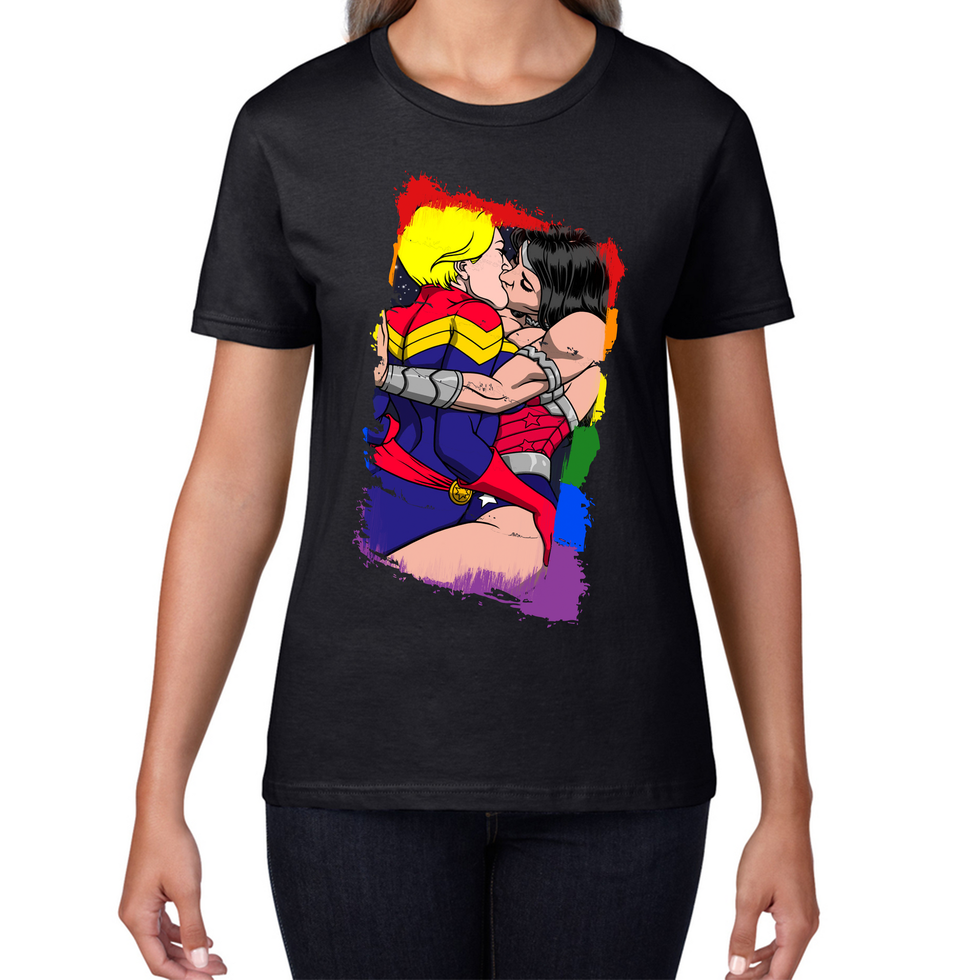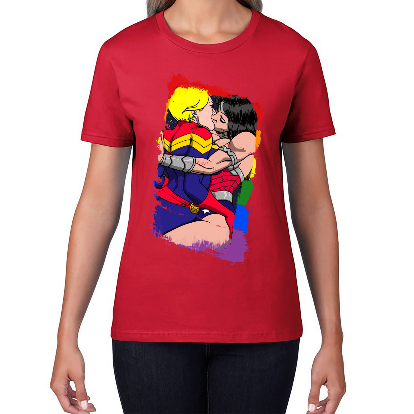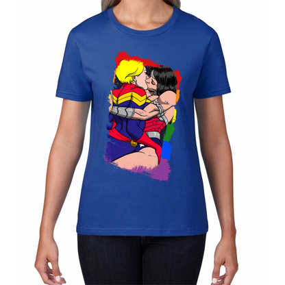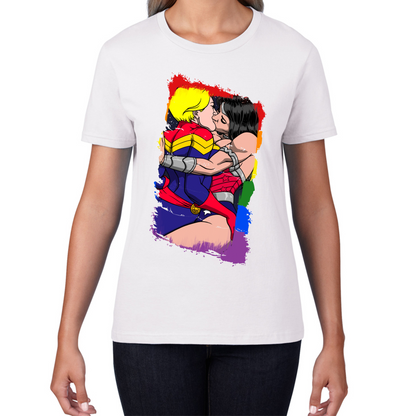Wonder Women x Captain Marvel Kissing LGBT Pride Ladies T Shirt