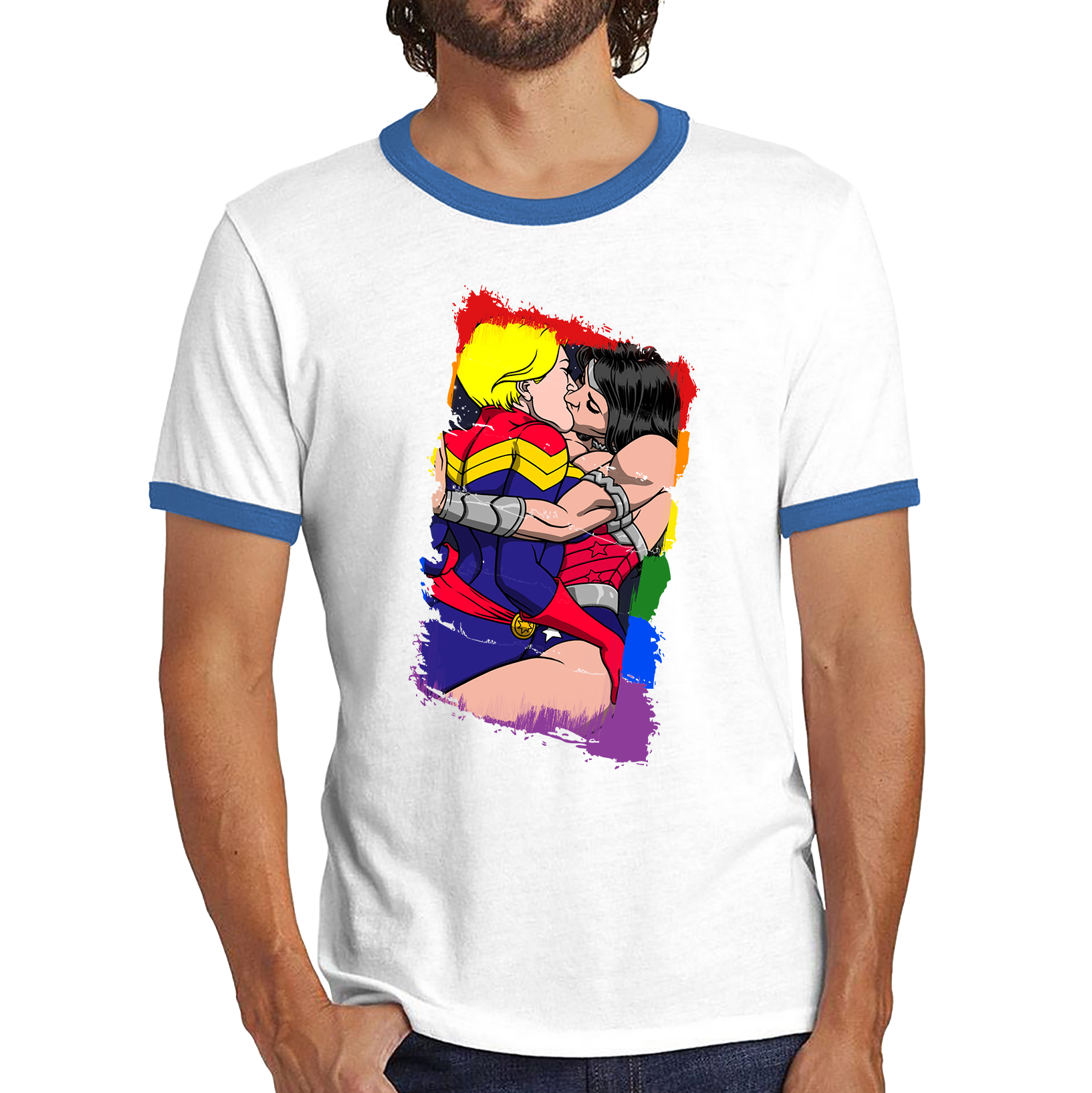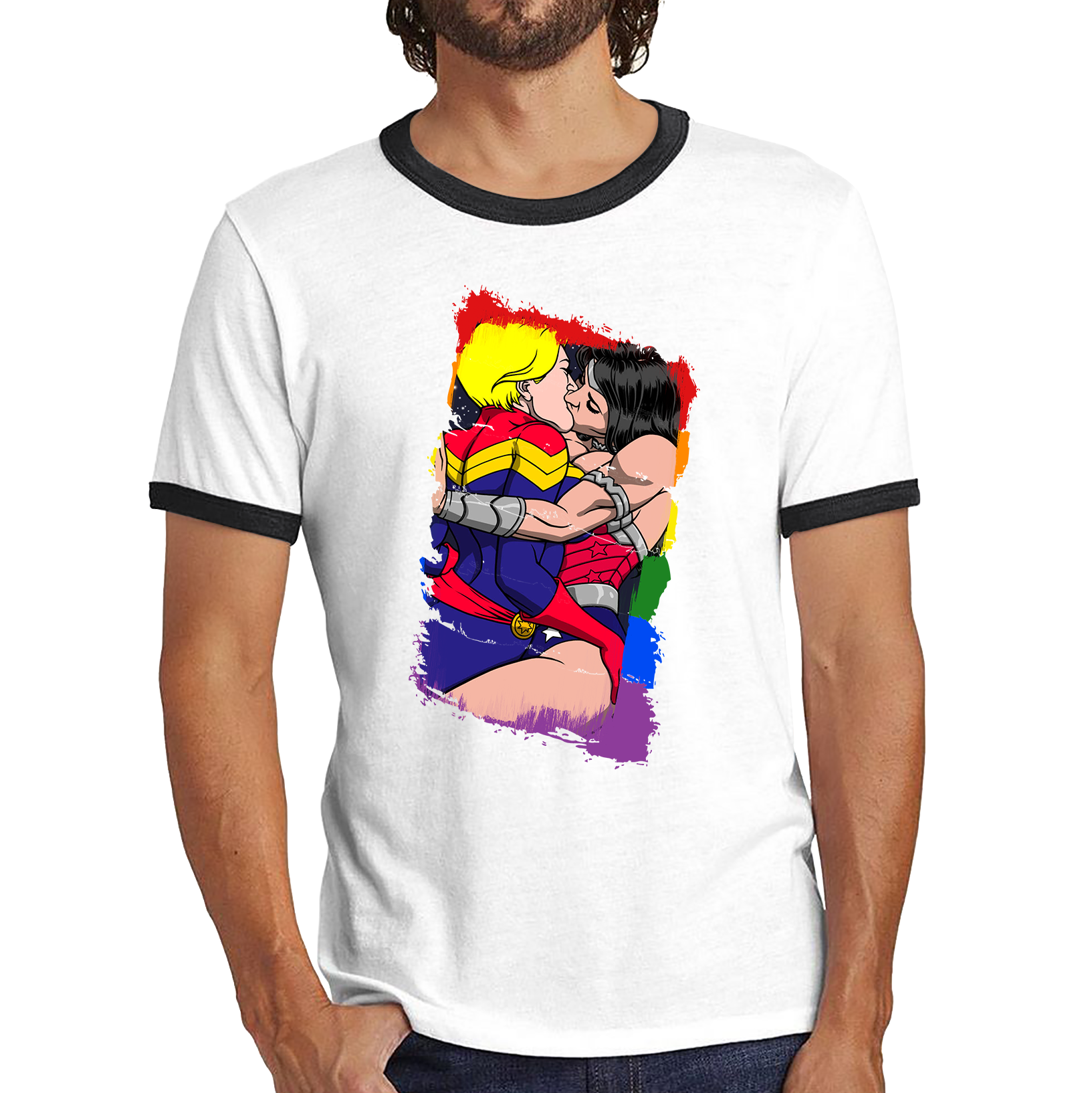 Wonder Women x Captain Marvel Kissing LGBT Pride Valentine Ringer T Shirt