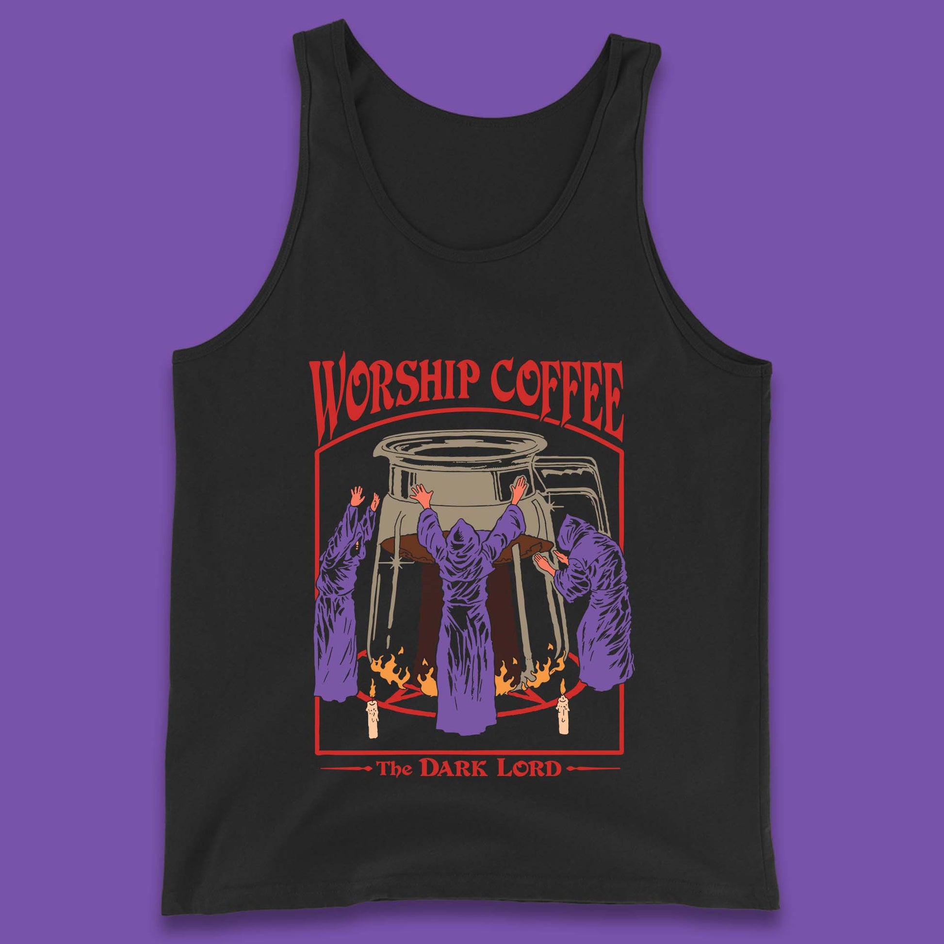 Worship Coffee The Dark Lord Aesthetic Vintage Coffee Retro Halloween Coffee Lover Faith Tank Top