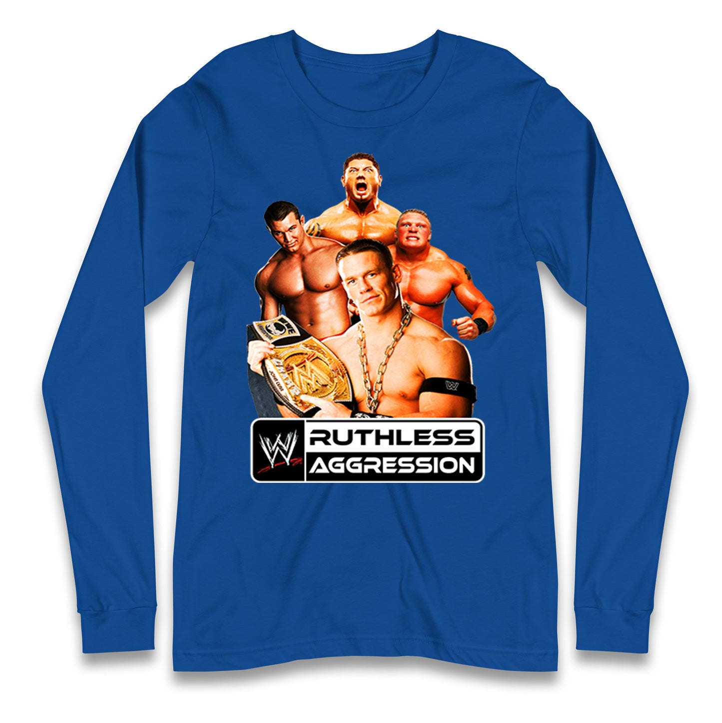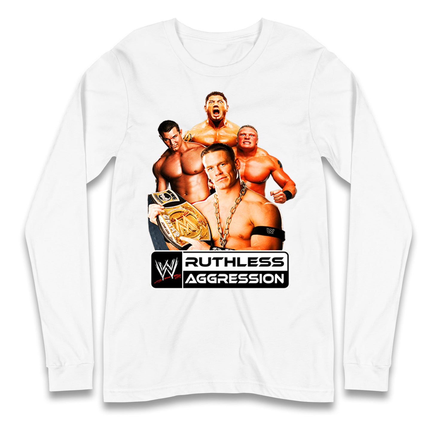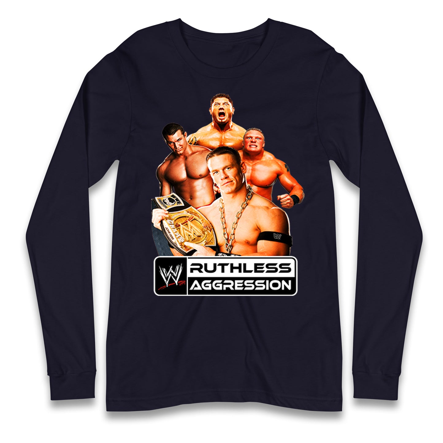 Expertly crafted for fans of the iconic Ruthless Aggression Era, this long sleeve t-shirt is a must-have for any WWE enthusiast. Made with high-quality materials and featuring a bold design, this shirt offers both style and comfort. Show off your love for the era that reshaped the WWE with this one-of-a-kind piece.