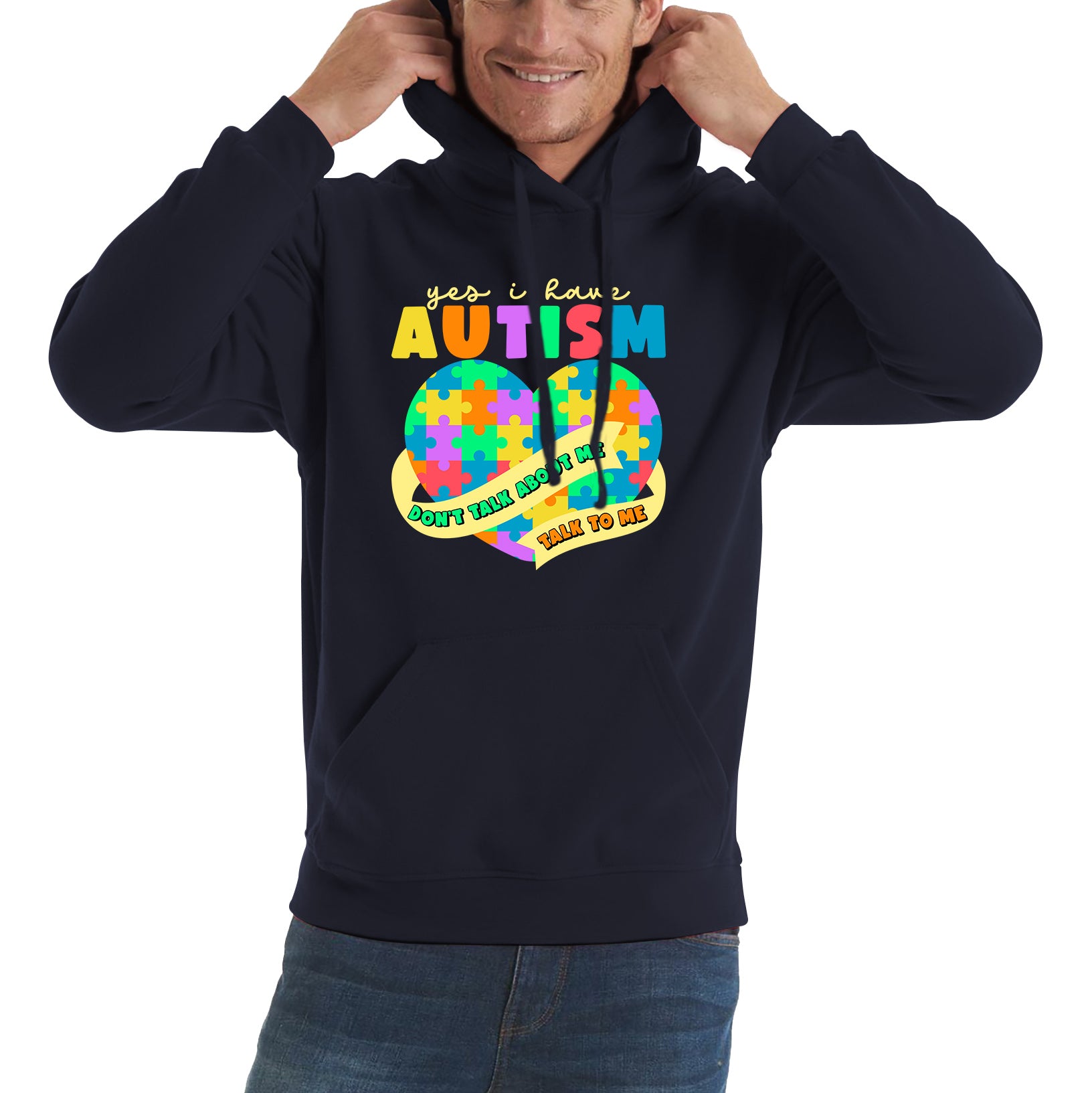 Yes I Have Autism Don't Talk About Me Talk To Me Autism Awareness Autism Support Autistic Pride Heart Puzzle Unisex Hoodie